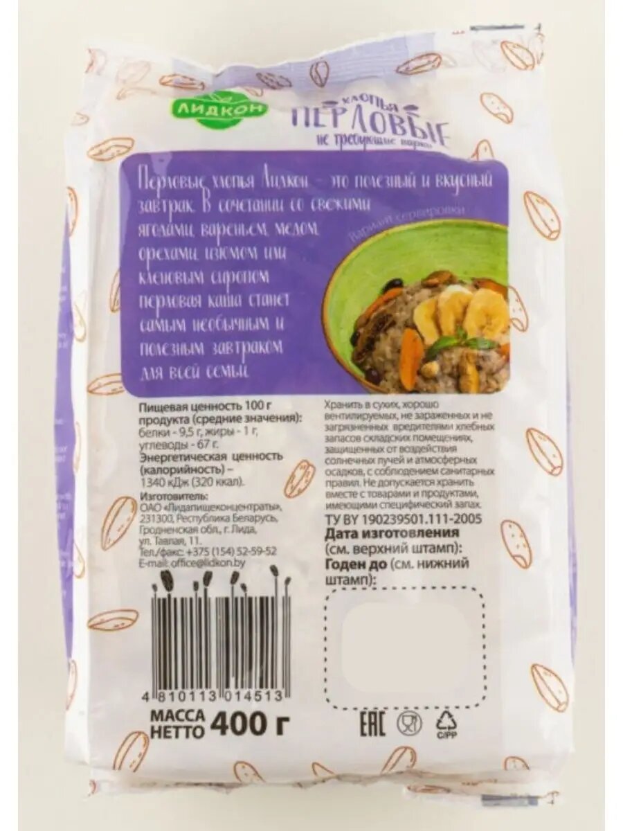 Перловые хлопья 2 упаковки по 400 г интересное: