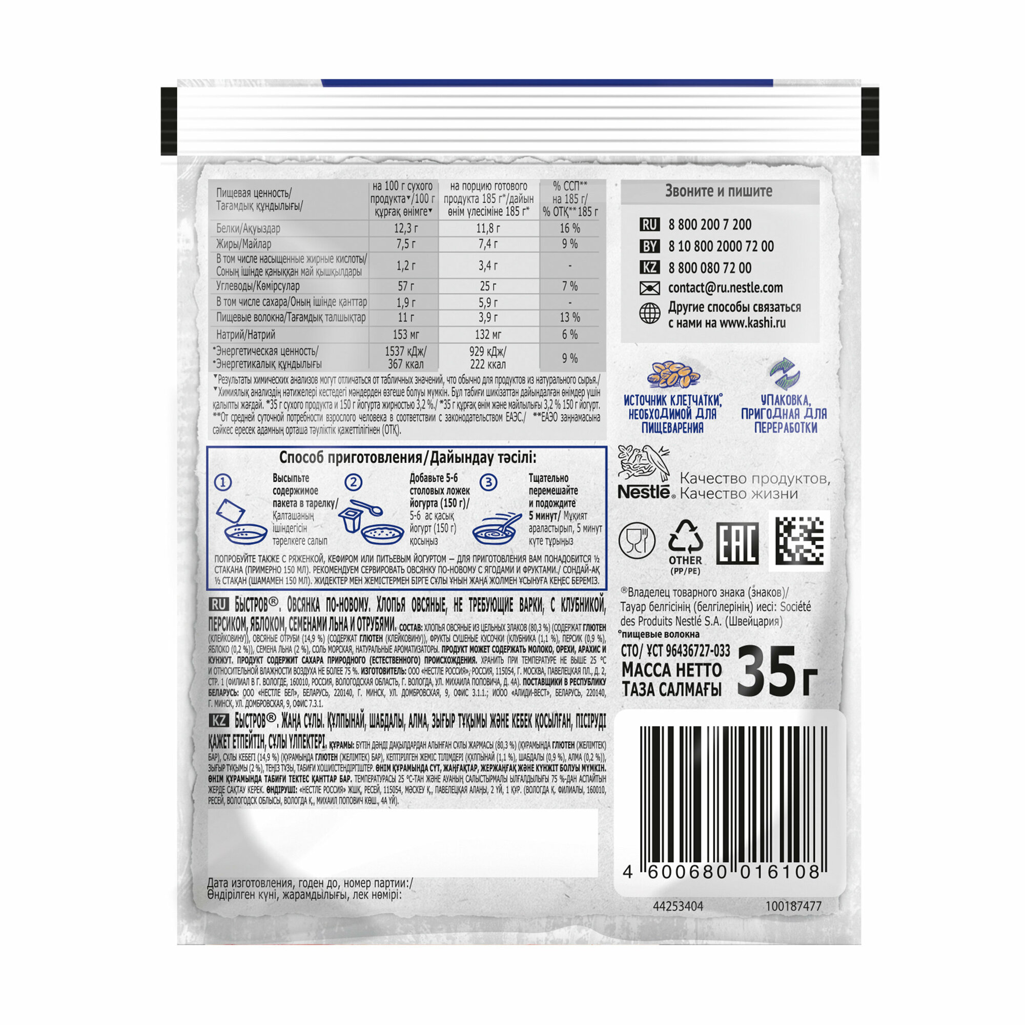 СохранитьХлопья Быстров овсяные, ассорти клубники, персика, яблока и семён льна, 175г 2 шт интересное: