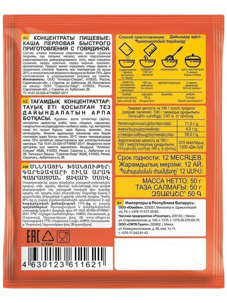 Каша перловая с говядиной "Mужcкой характер" (5 шт х 50 г)