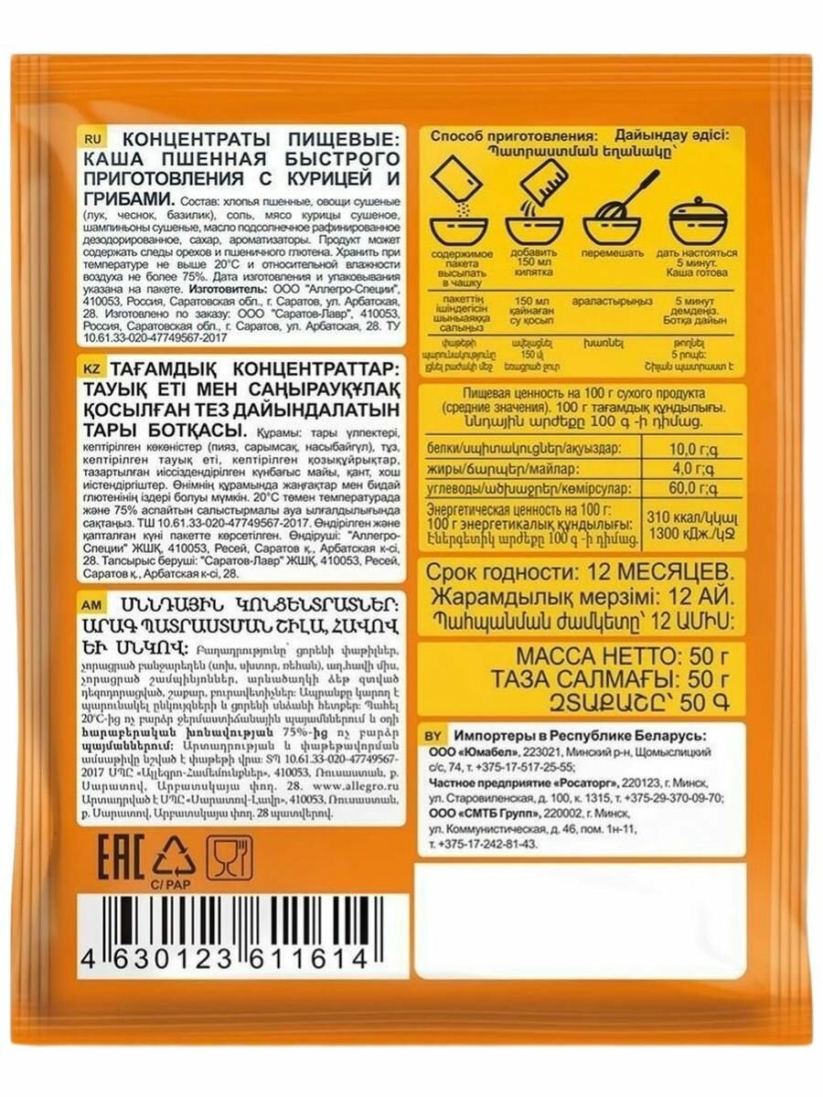 Каша "Мужской характер" микс: перловая с курицей, перловая с говядиной, пшенная с курицей и грибами (9 шт х 50 г) интересное: