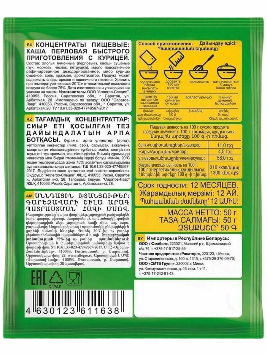 Каша перловая с курицeй "Mужской характер" (5 шт х 50г) интересное: