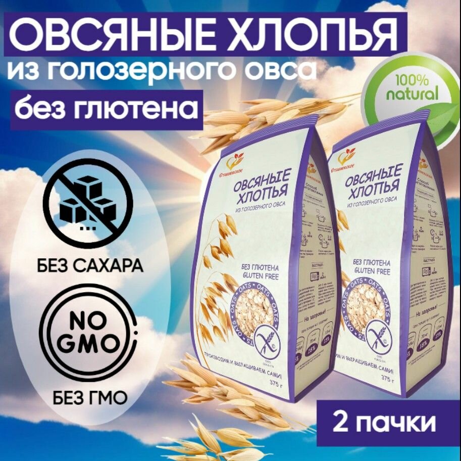 Хлопья овсяные из голозёрного овса натуральные, без глютена 375 гр, Сташевское (2 шт. в наборе) интересное: