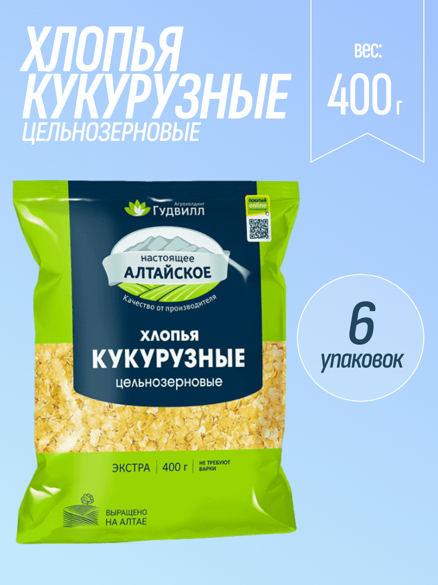 Кукурузные хлопья цельнозерновые без варки 400 гр 6 упаковок интересное: