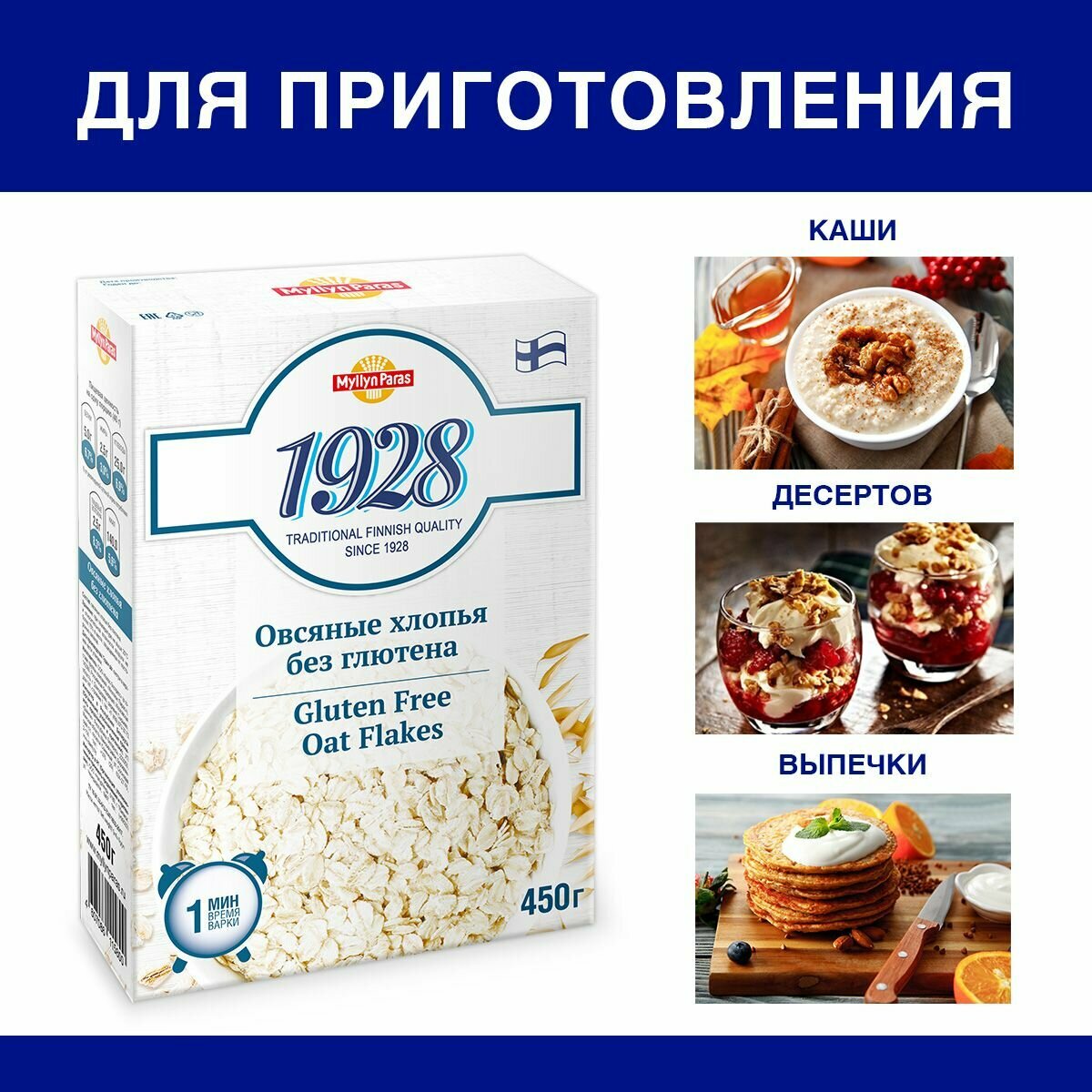 Овсяные хлопья без глютена 1928 Myllyn Paras (Мюллюн Парас) 1350 г (3 шт) интересное: