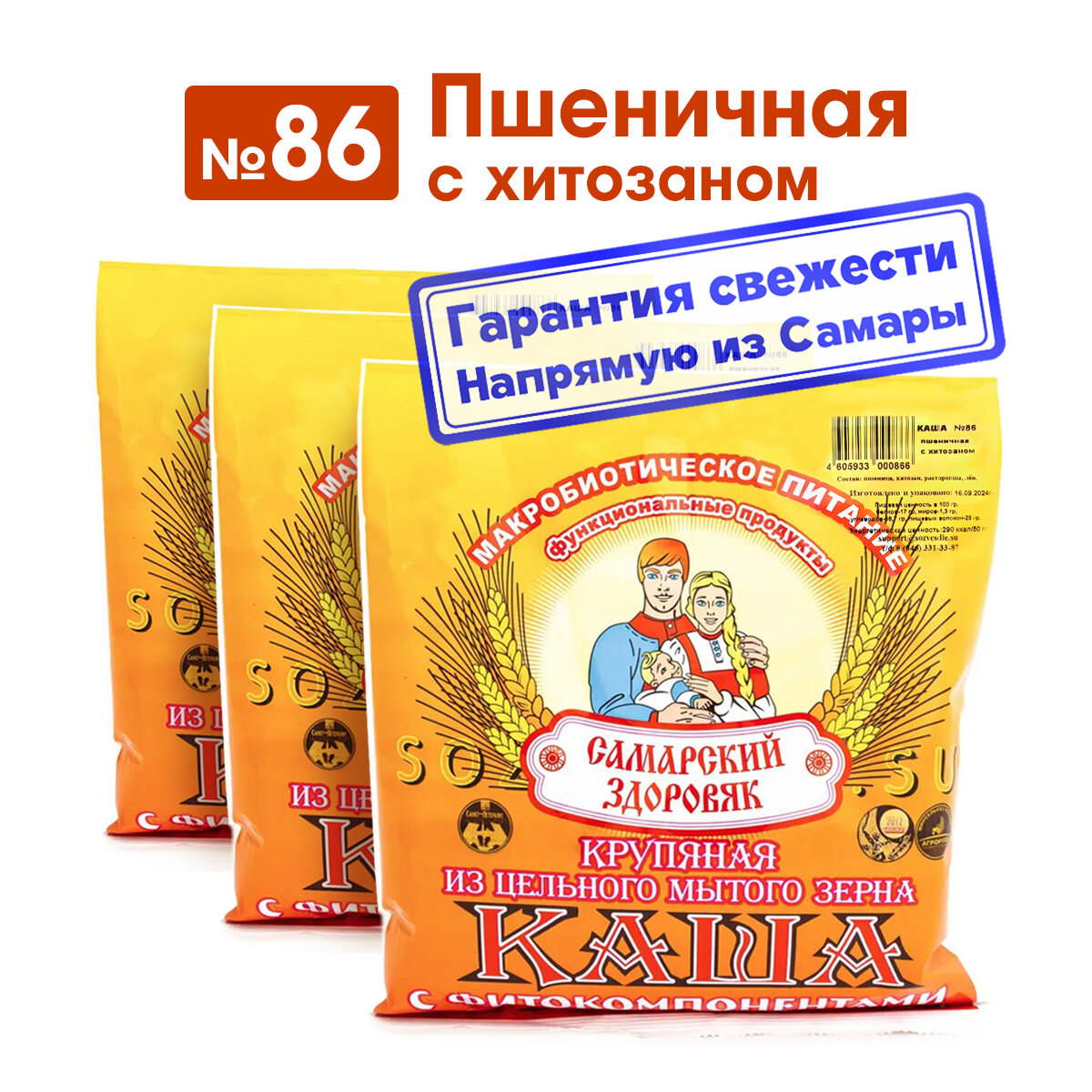 Каша "Самарский Здоровяк” №86 Пшеничная с хитозаном, 240 г х 3 шт интересное: