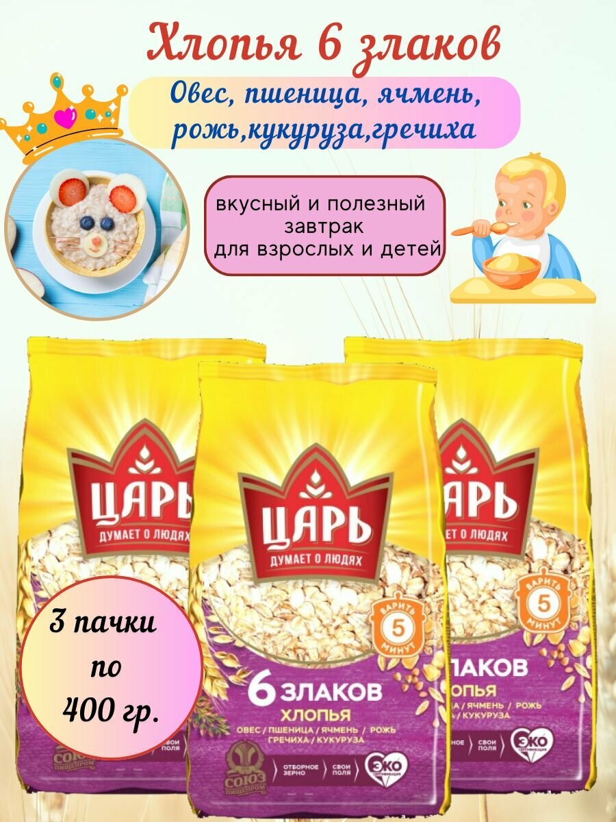 Царь Хлопья 6 злаков 3 упаковки по 400гр интересное: