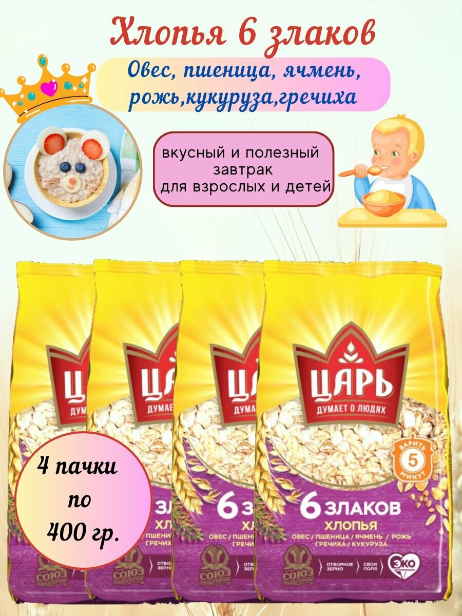 Царь Хлопья 6 злаков 4 упаковки по 400гр интересное: