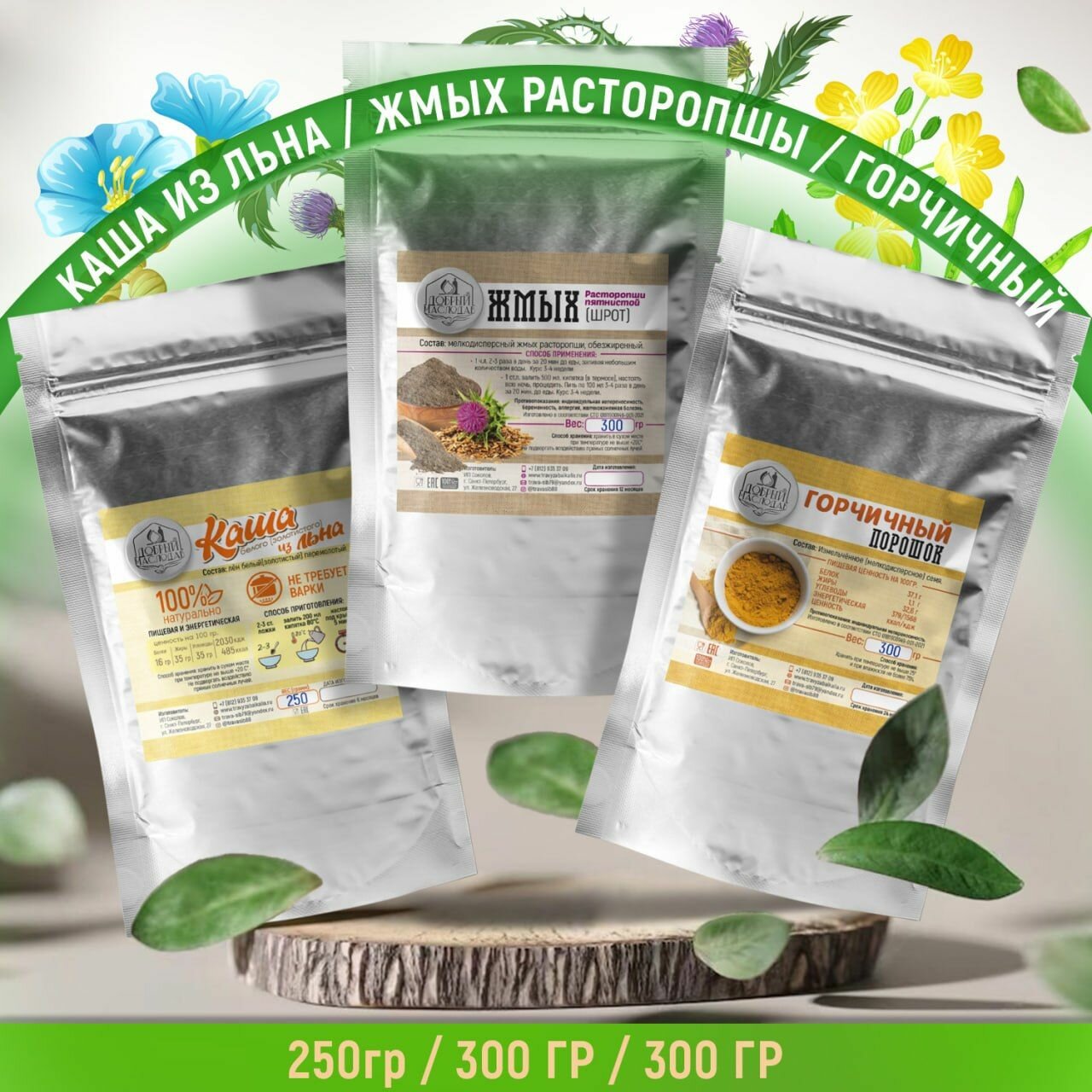 Купить Каша льна 250 гр /жмых расторопши 300 гр /горчичный жмых 300 гр Добрый Маслодав