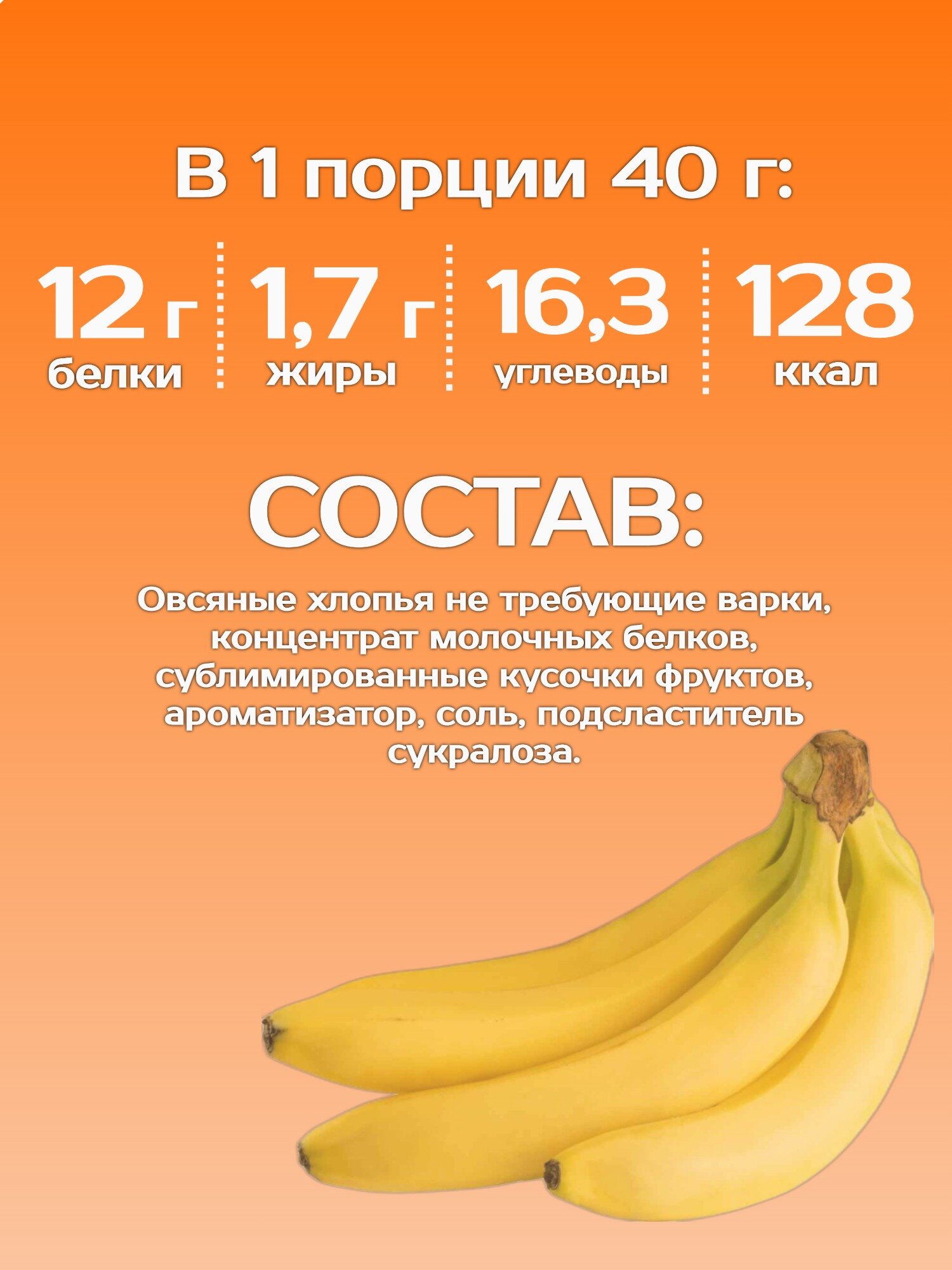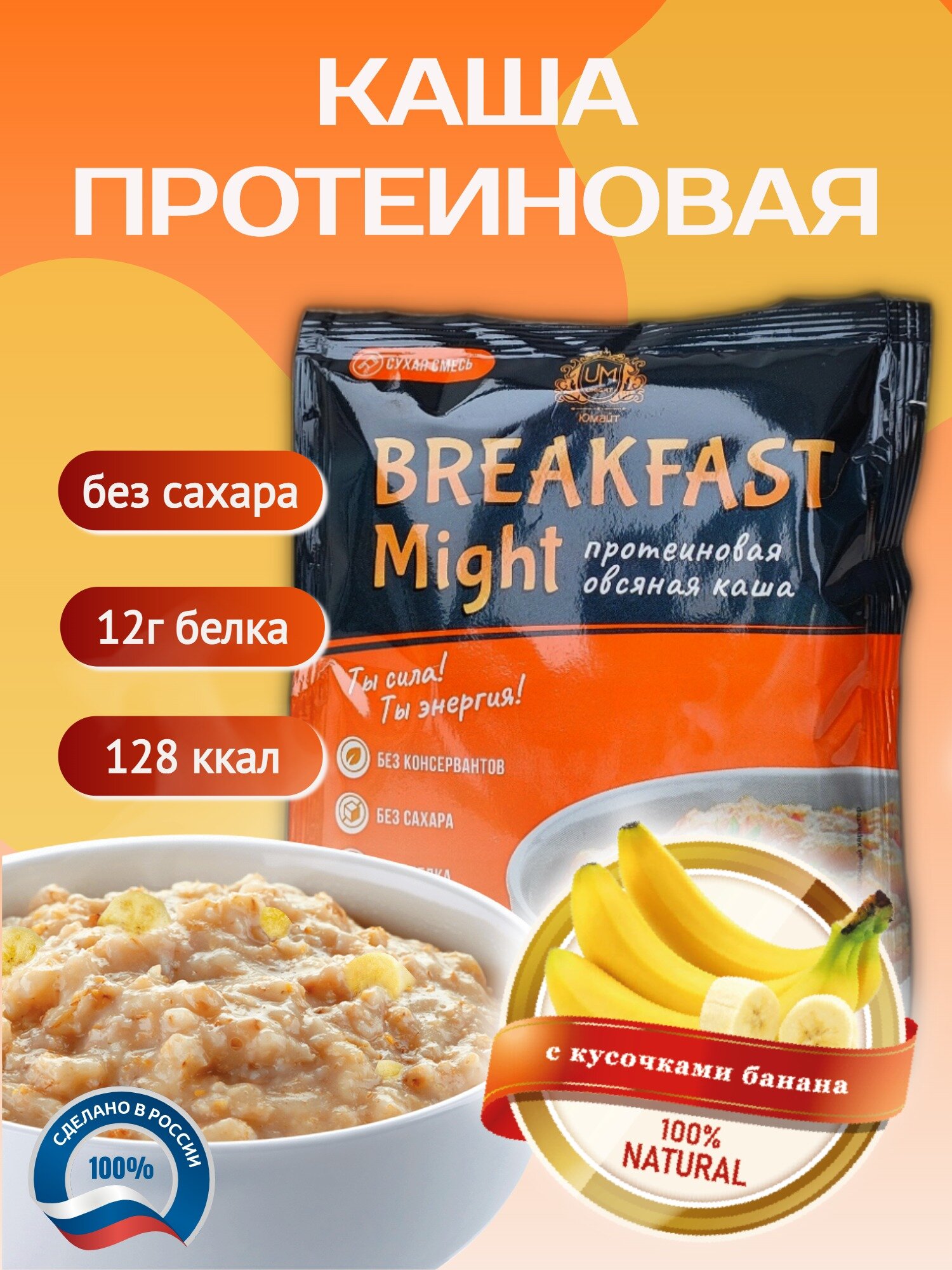 Протеиновая овсяная каша быстрого приготовления "Breakfast Might" банан, 1 порция саше 40 г интересное: