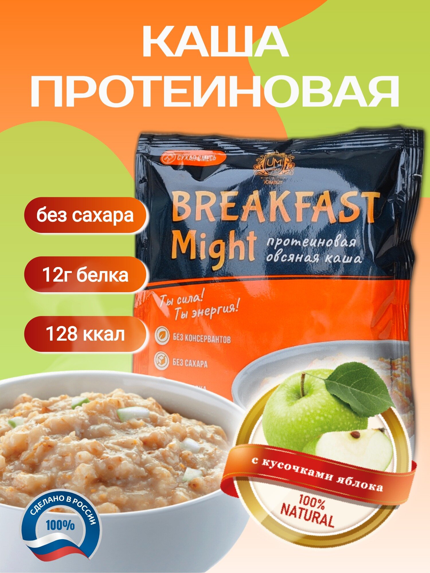 Купить Протеиновая овсяная каша быстрого приготовления "Breakfast Might" с яблоком, 1 порция саше 40 г
