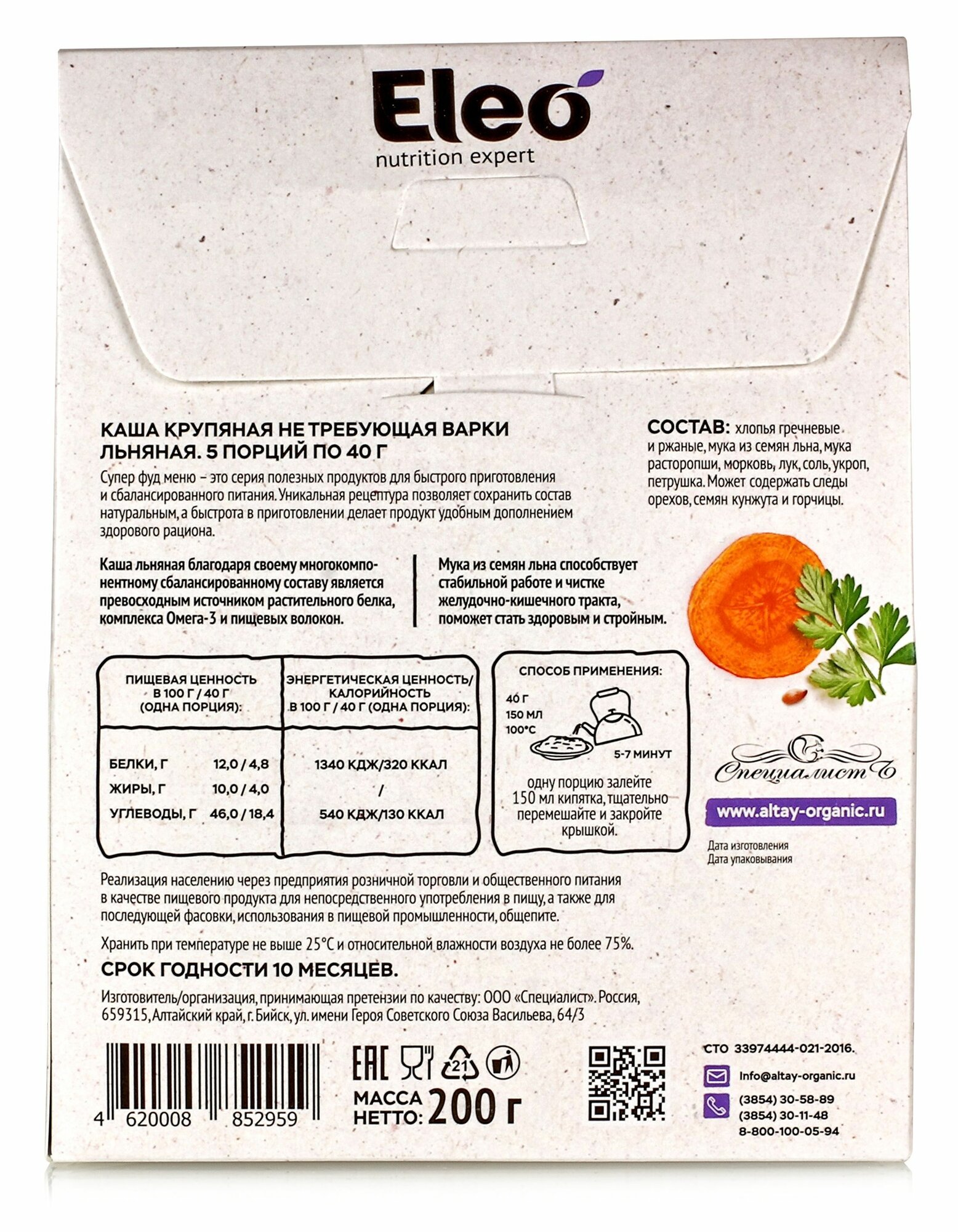 СохранитьКаша Eleo ассорти: конопляная с яблоком и семенами льна, льняная, гречневая детокс 5х40 гр (3 уп) интересное: