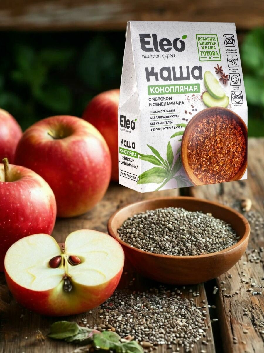 Каша Eleo ассорти: конопляная с яблоком и семенами чили, льняная, овсяная тыквенная 5х40 гр (3 уп)