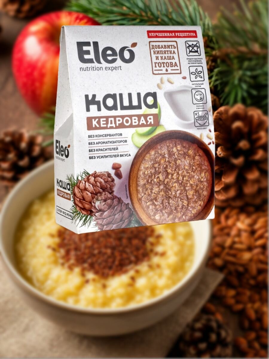 Каша Eleo ассорти: кедровая, конопляная с куркумой и кайенским перцем, конопляная с яблоком и семенами чили 5х40 гр (3 уп)