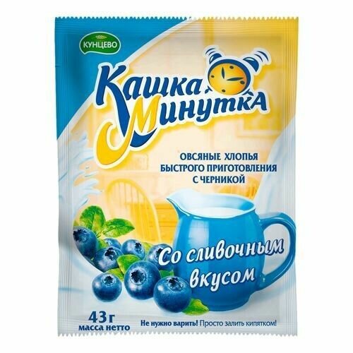 Хлопья овсяные "Кашка-Минутка" черника со сливками, пакет 43 г х 25 штук интересное: