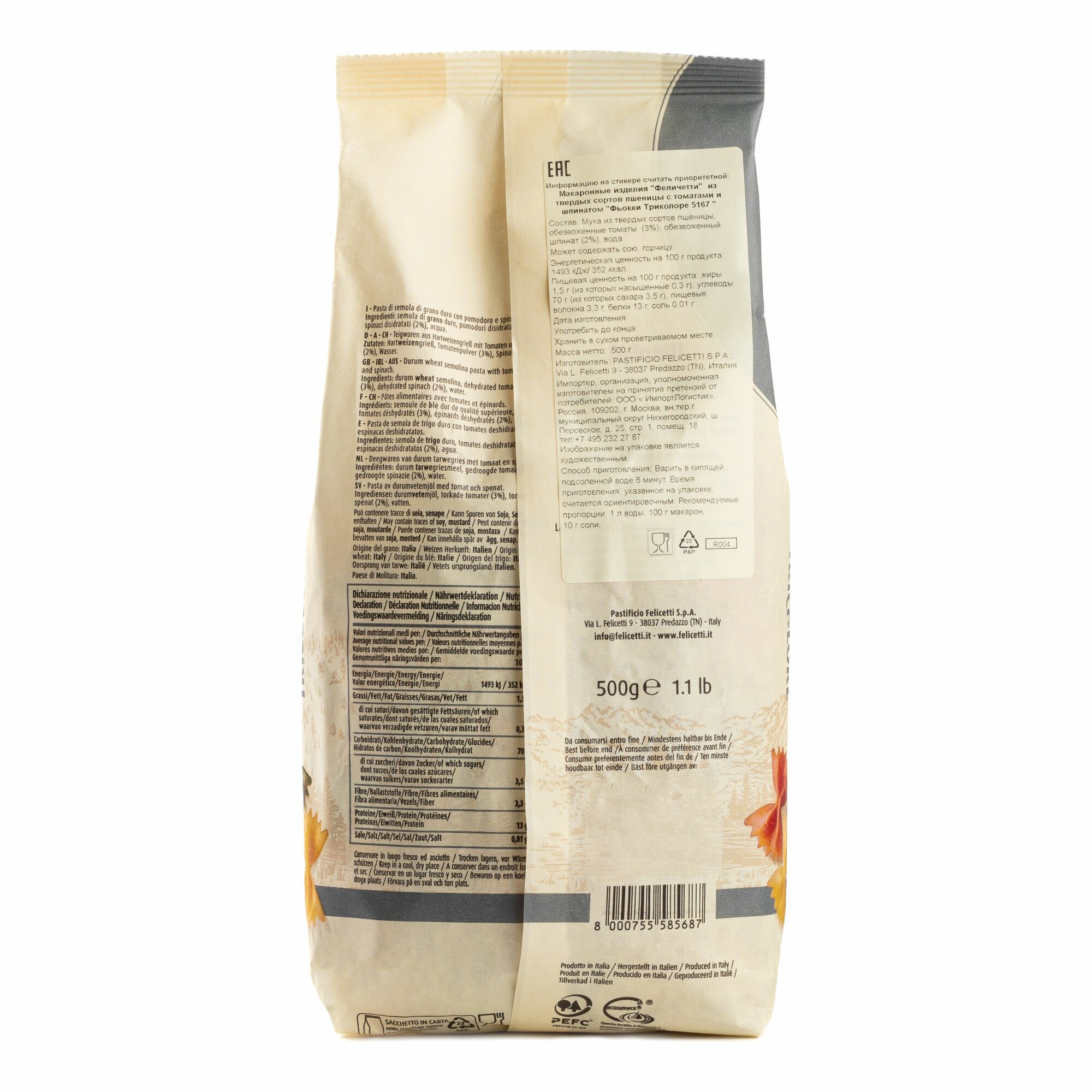 Макарона Фьокки № 5167 "Пастифичио Феличетти" из твердых сортов пшеницы, 500г, (бабочки) интересное: