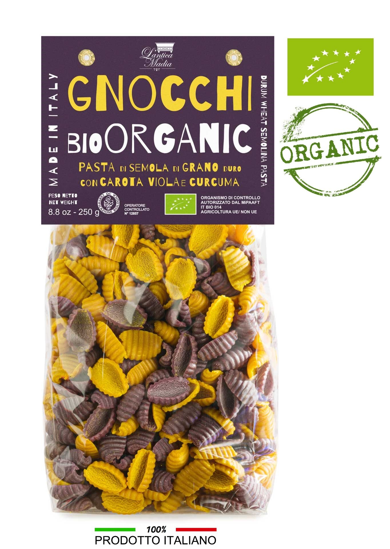 Купить Ньокки L’ANTICA MADIA органические с куркумой и фиолетовой морковью, Италия 250г (органик, кошер)