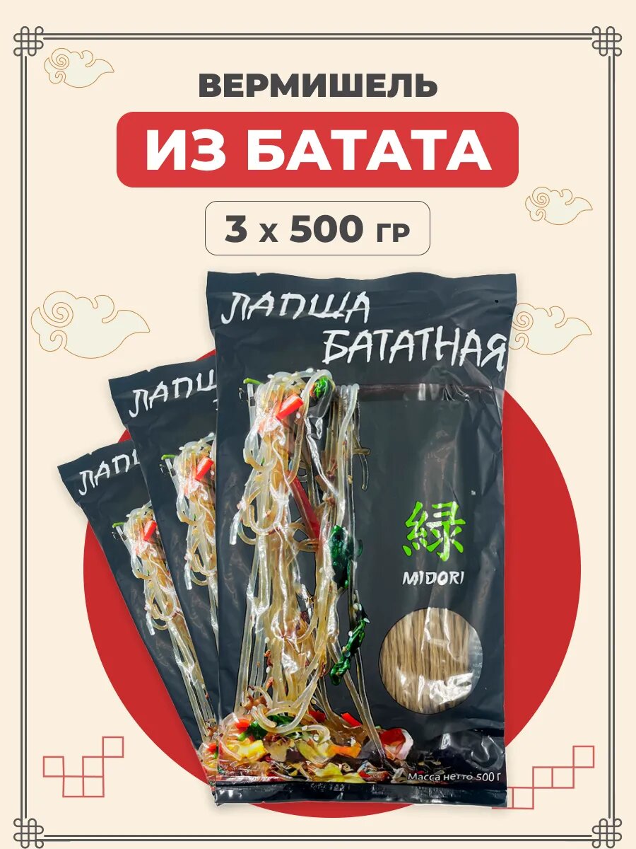 Midori Лапша бататная, китайская, азиатская из сладкого картофеля 500 г 3 шт / Мидори вермишель из батата интересное: