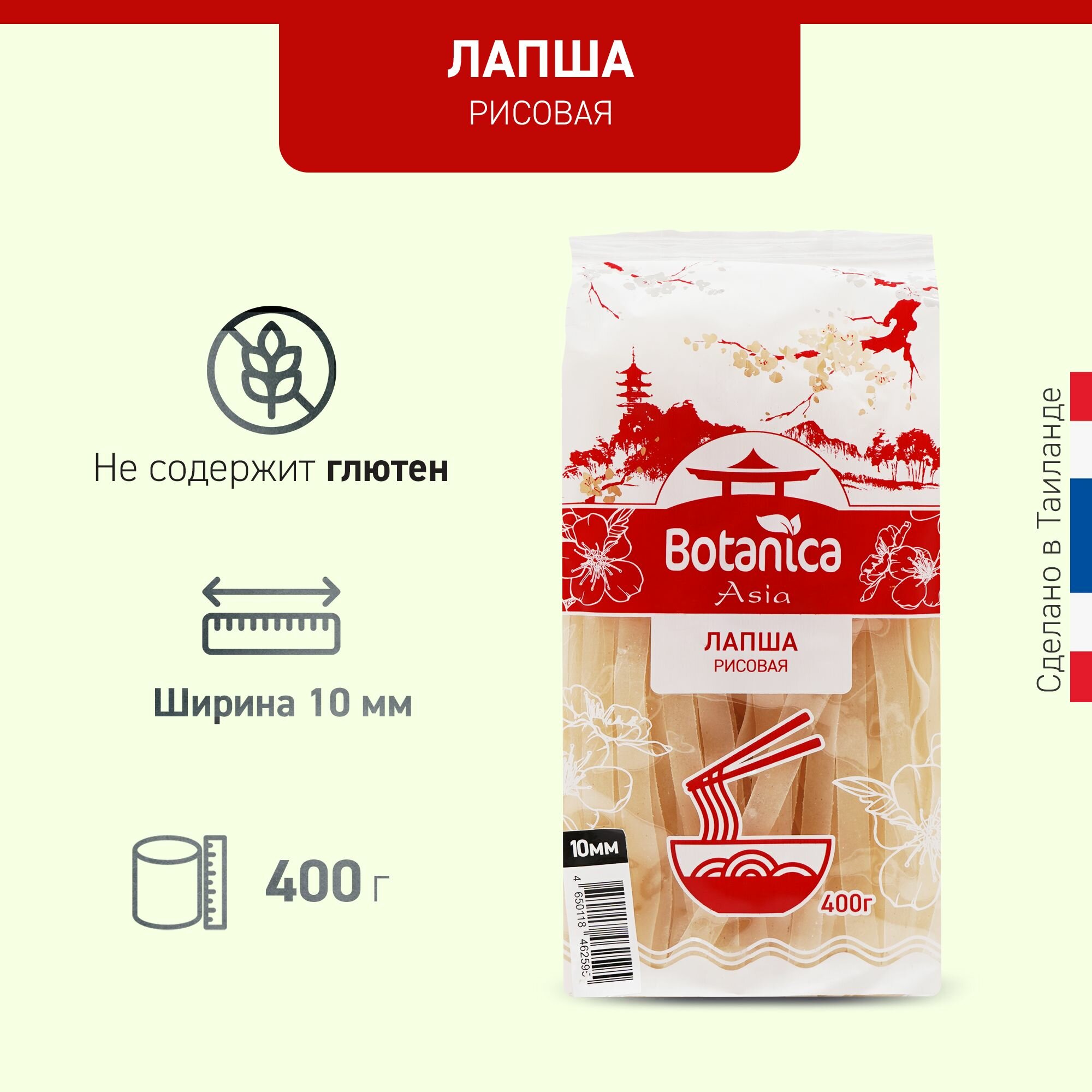 Макароны BOTANICA ASIA Лапша рисовая (10мм), 400 г интересное: