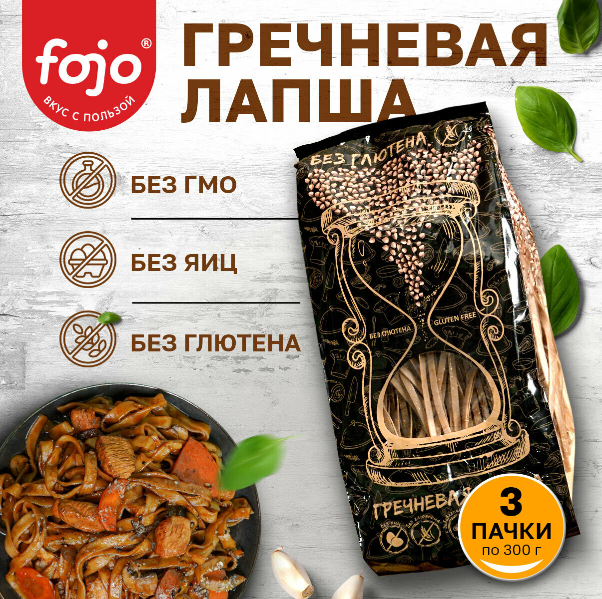 Купить Fojo Гречневая лапша без глютена. Макароны для здорового питания. Набор 3 пачки по 300 г