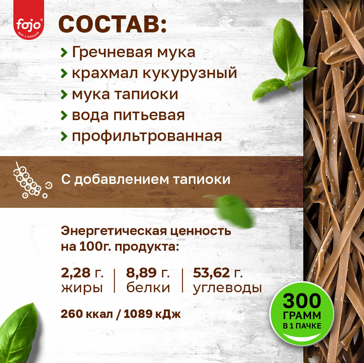 Fojo Гречневая лапша без глютена. Макароны для здорового питания 300 г