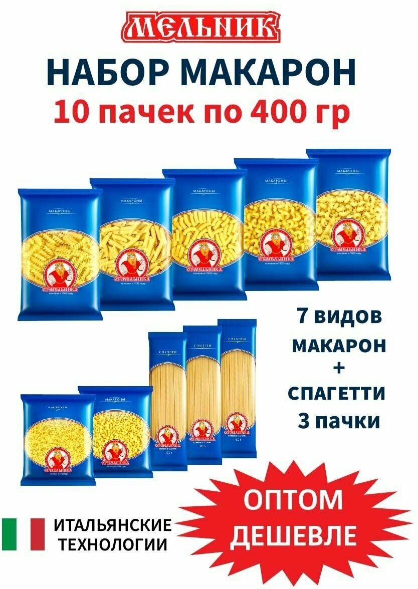 Набор макаронных изделий "От Мельника" 7 видов макарон+3 упаковки спагетти интересное: