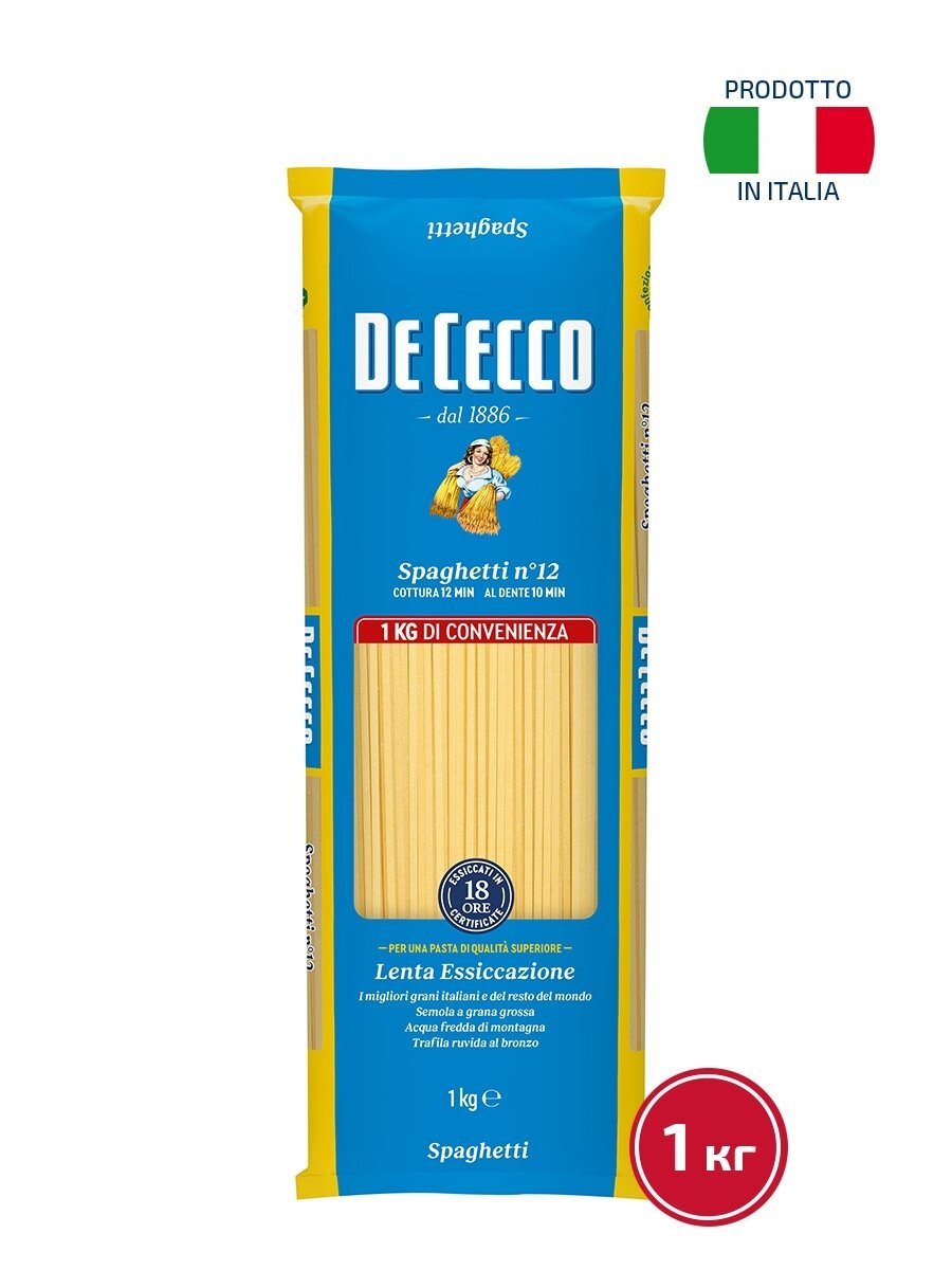 Макаронные изделия De Cecco, спагетти №12, 1000 г, интересное: