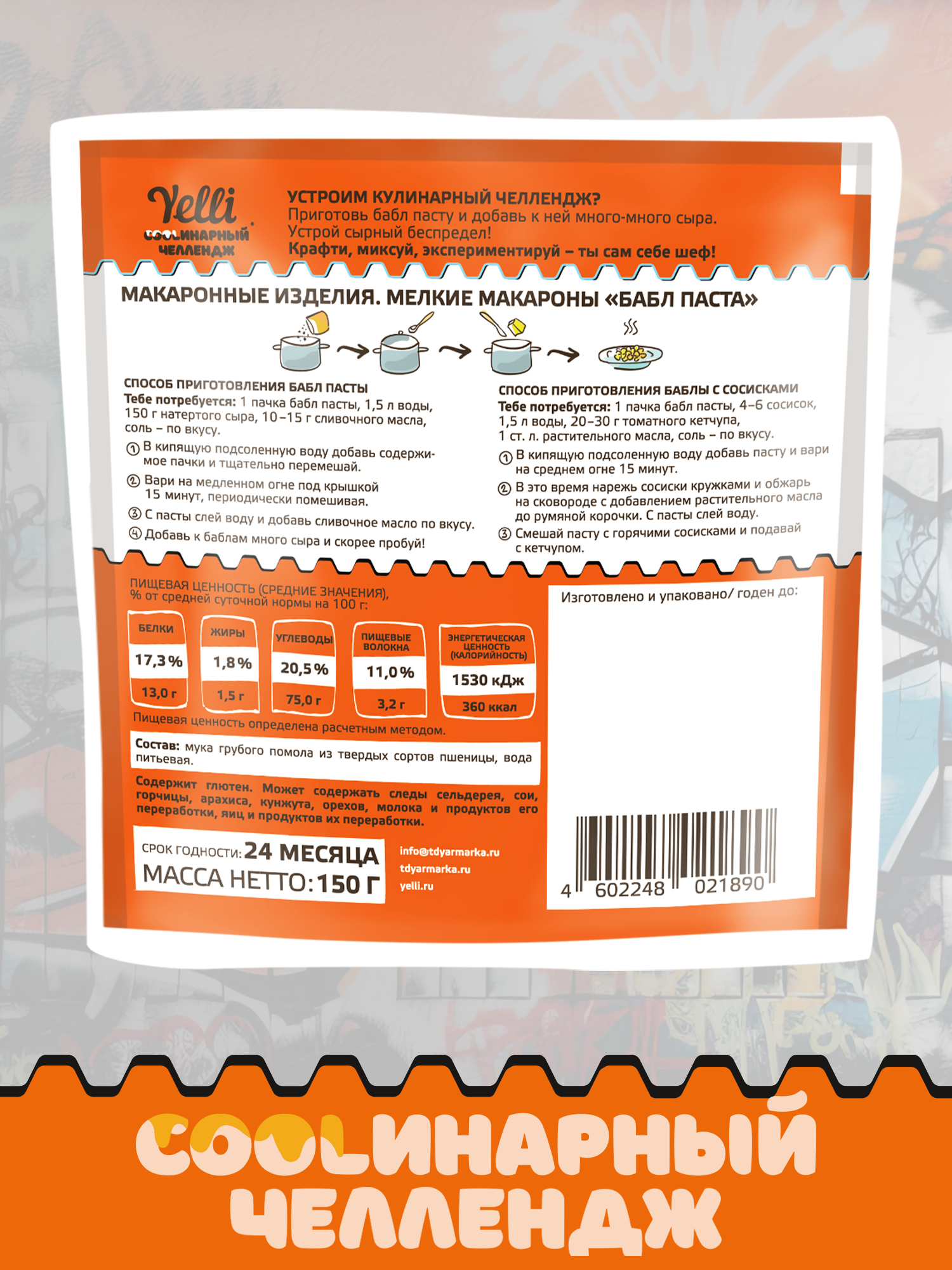 Мелкие макароны "БАБЛ ПАСТА" Yelli кулинарный челлендж 150г. интересное: