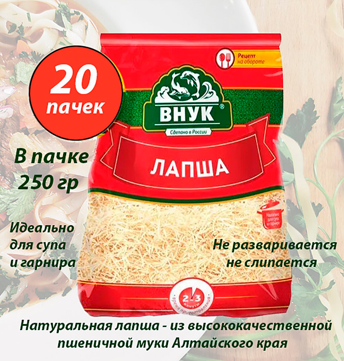Лапша (Натуральная), из высококачественной пшеничной муки, "ВНУК" 250 г х 20 шт интересное: