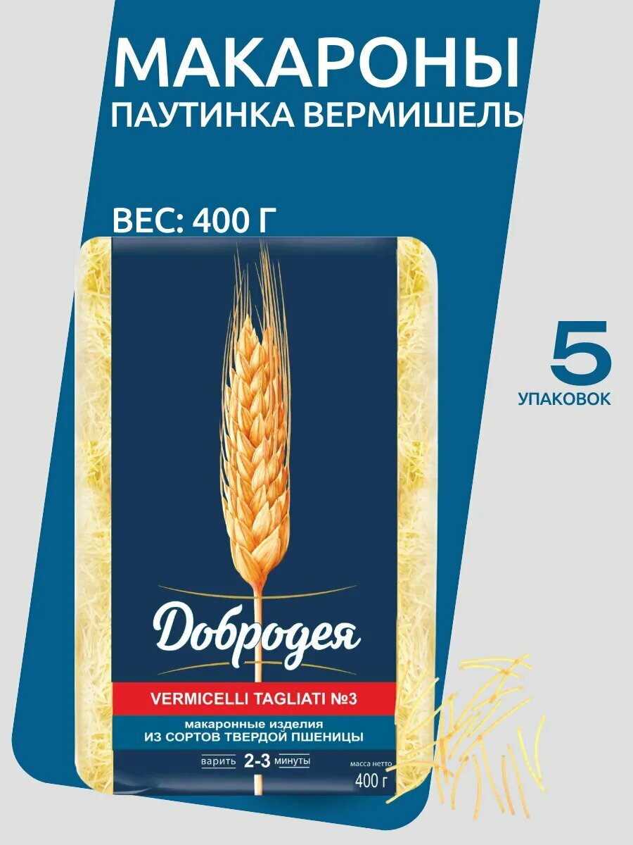 Вермишель макароны из твердых сортов пшеницы 400г 5 упаковок