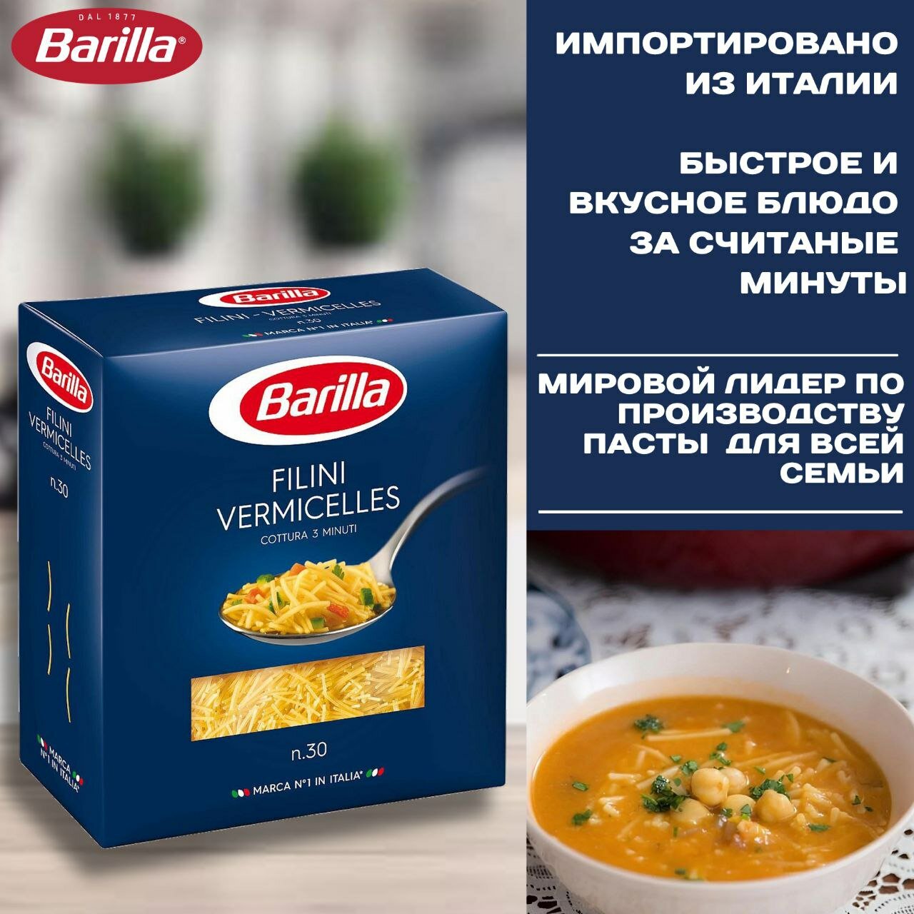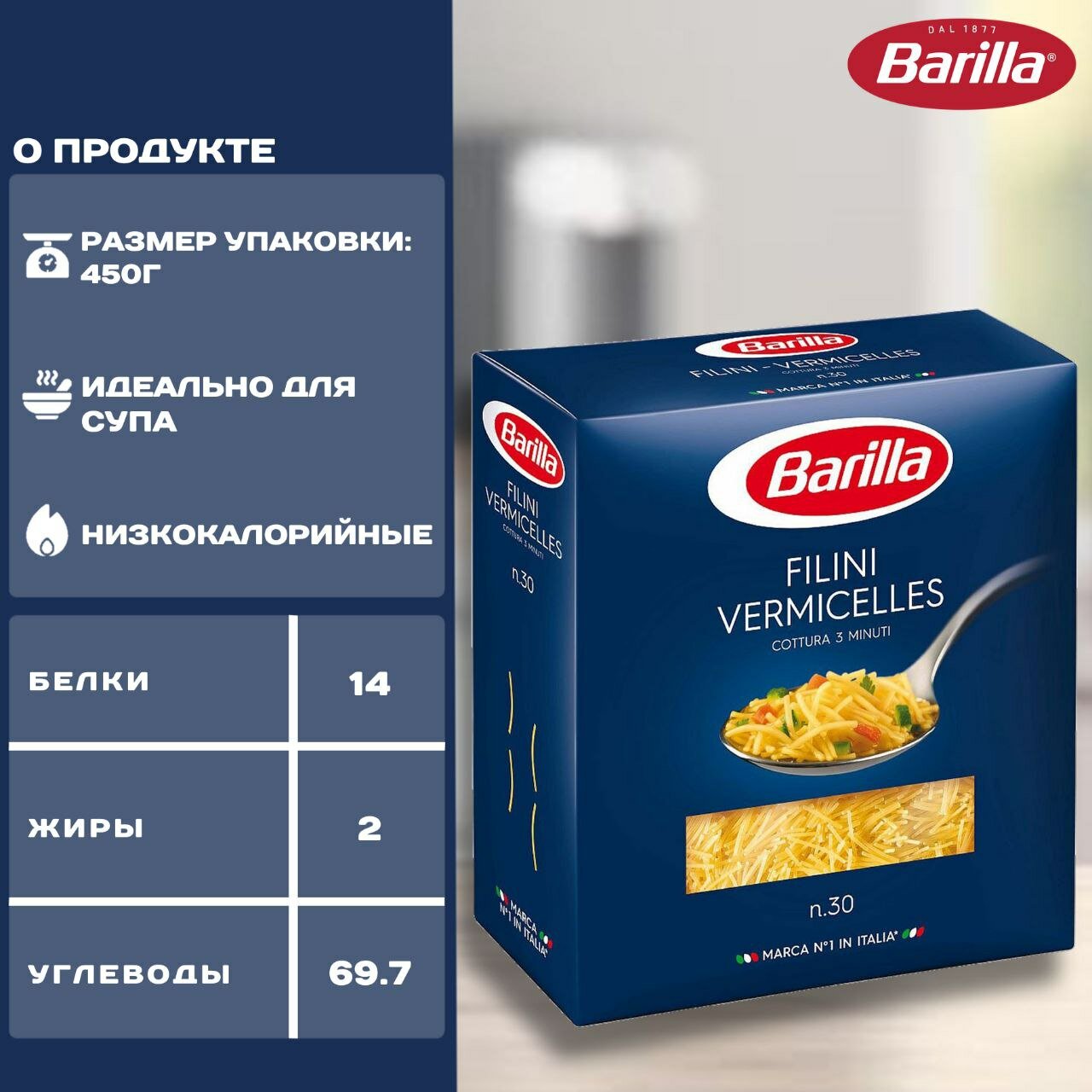 Ниже Вы можете прочитать отзывы на Вермишель для супа Barilla (филини), 2 упаковки по 450г., ознакомится с подробными характеристиками, посмотреть интересные обзоры и фотографии на Вермишель для супа Barilla (филини), 2 упаковки по 450г..