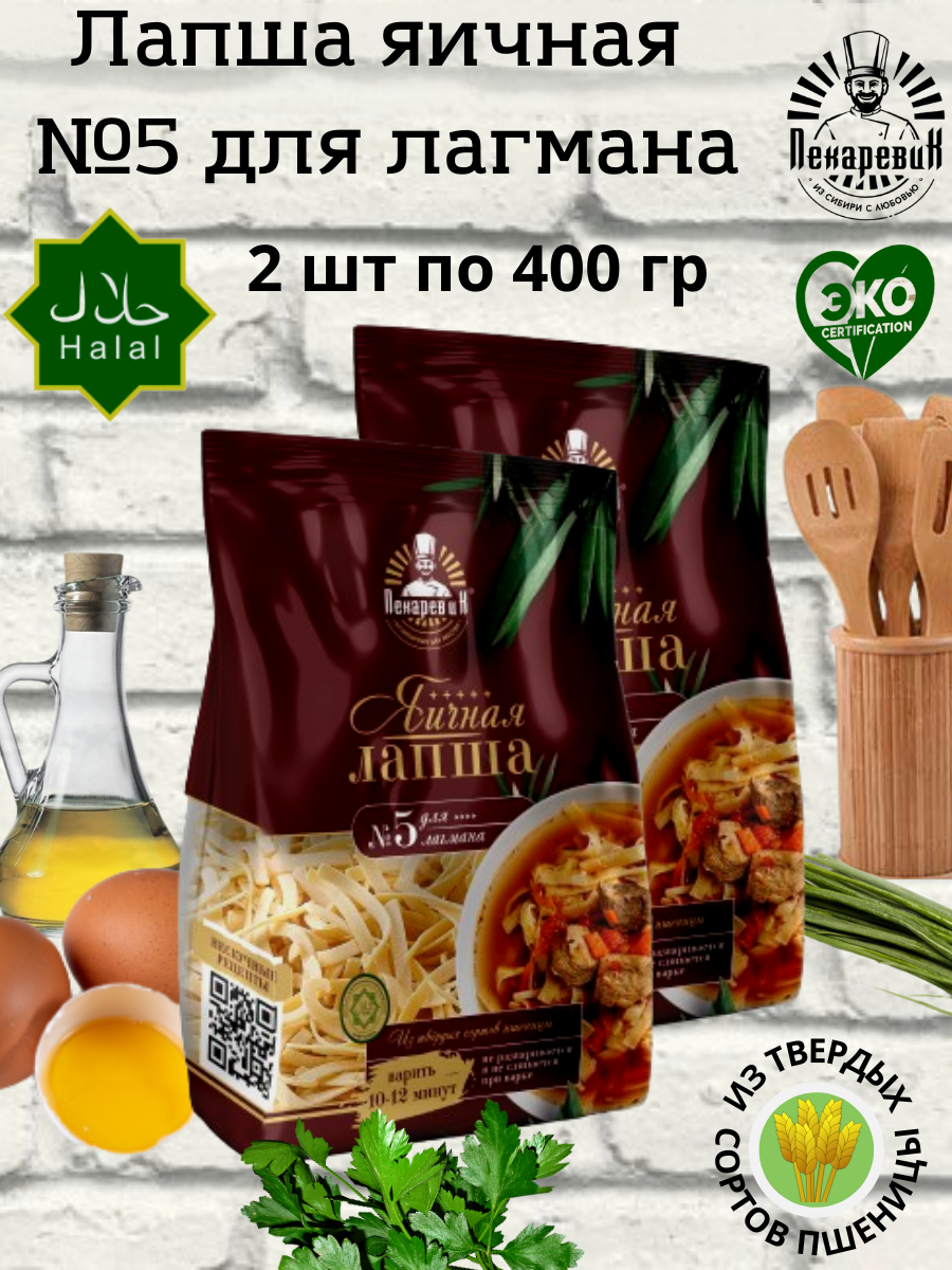 Набор Лапша яичная "Лагманная" ТМ "Пекарев и К" 400 г. х2шт. интересное: