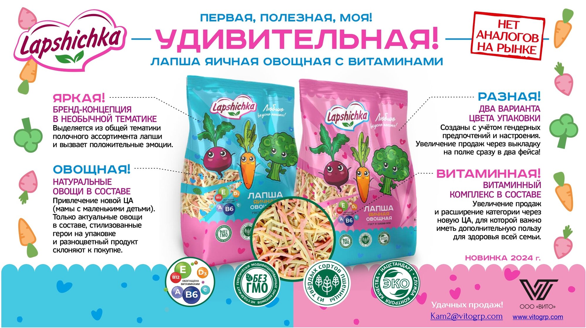 СохранитьЛапша яичная LAPCHICHKA "Овощная", набор 4 ШТ. по 250 г, с витаминам, Категория А, высший сорт, Россия интересное: