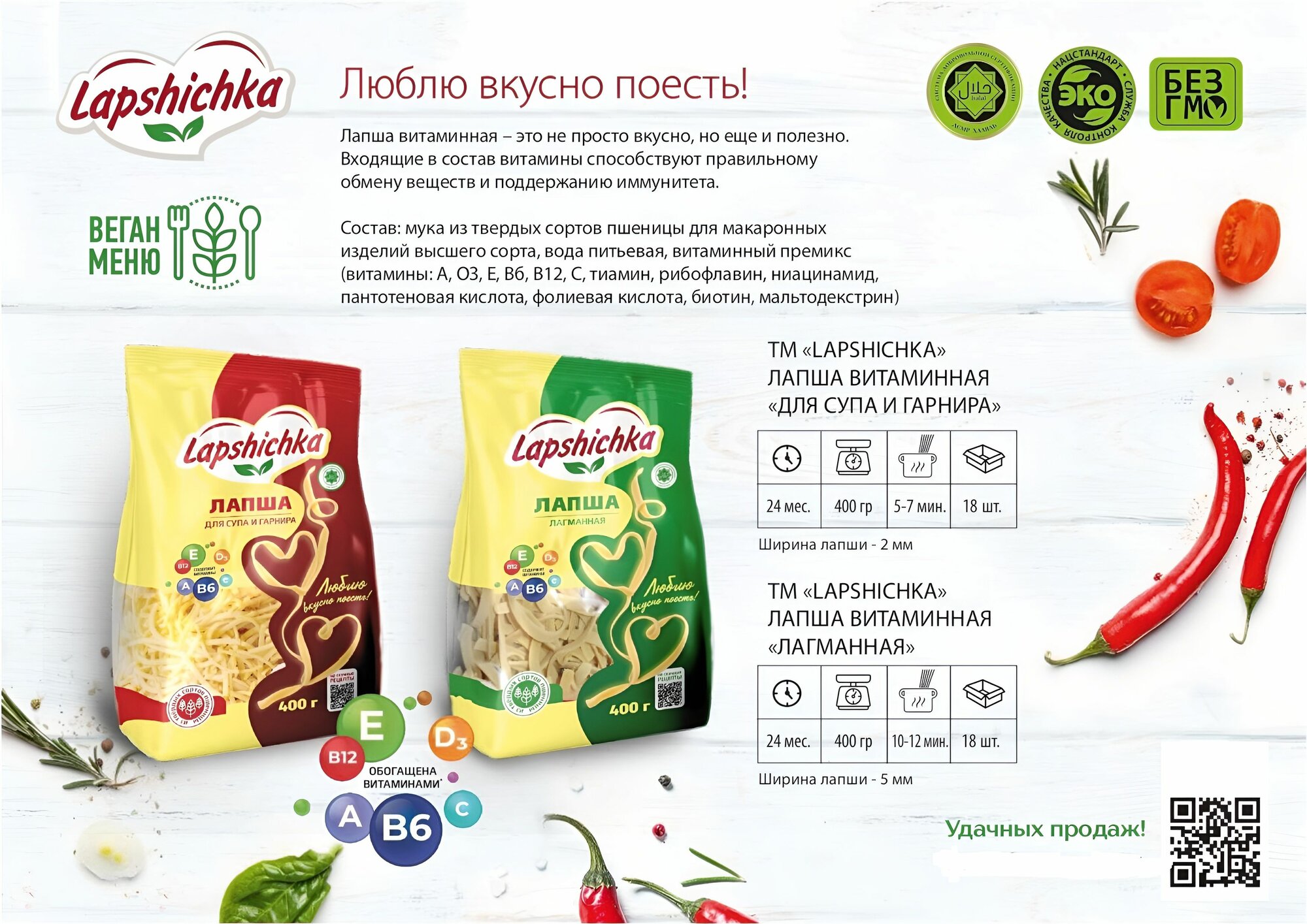 ЛАПША LAPSHICHKA витаминная ЛАГМАННАЯ, НАБОР 2 шт. по 400 г, ХАЛЯЛЬ, веган, из твердых сортов пшеницы, Россия