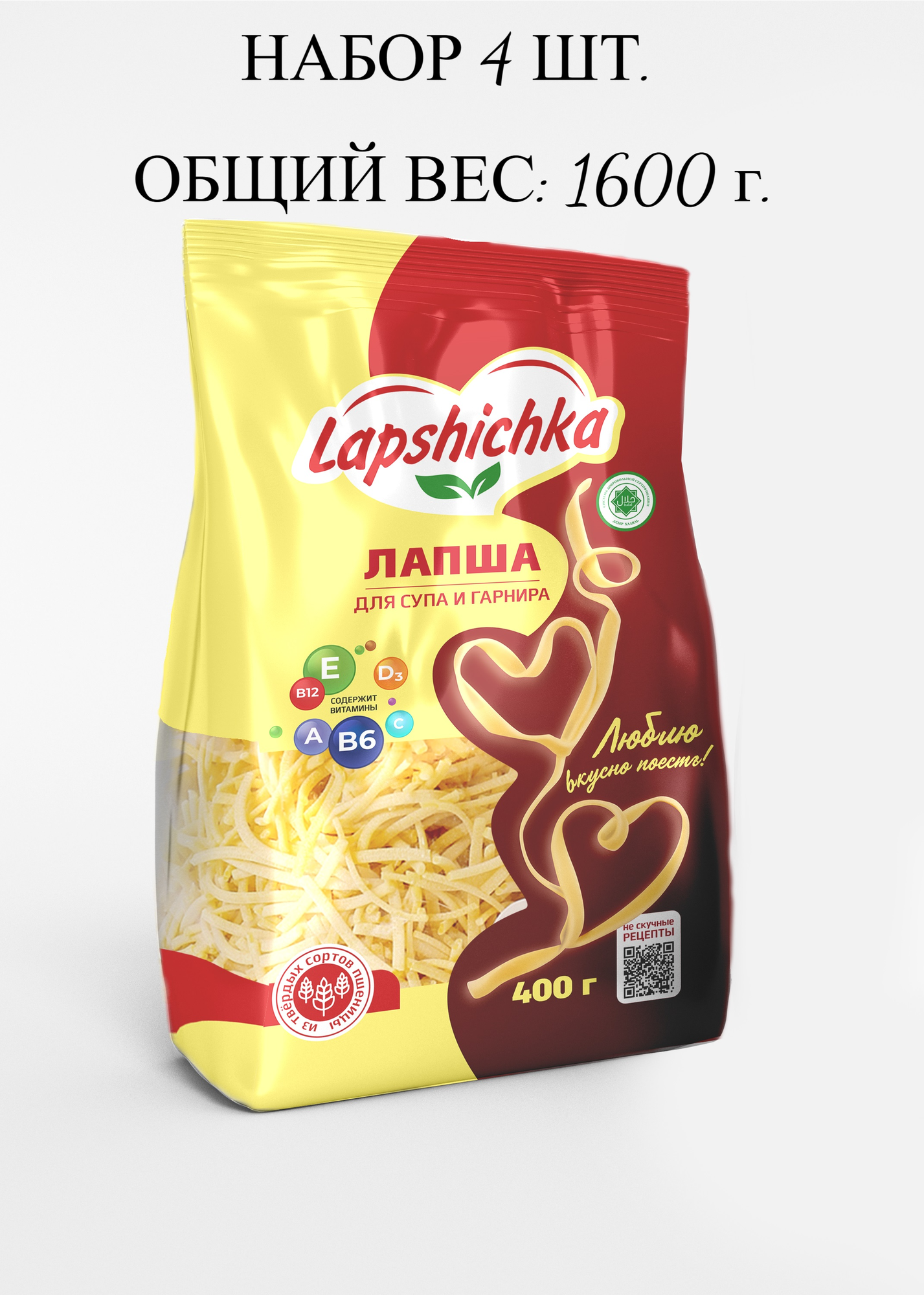 Купить ЛАПША LAPSHICHKA витаминная "ЛАГМАННАЯ", НАБОР 4 шт. по 400 г, ХАЛЯЛЬ, веган, твердые сорта пшеницы, Россия