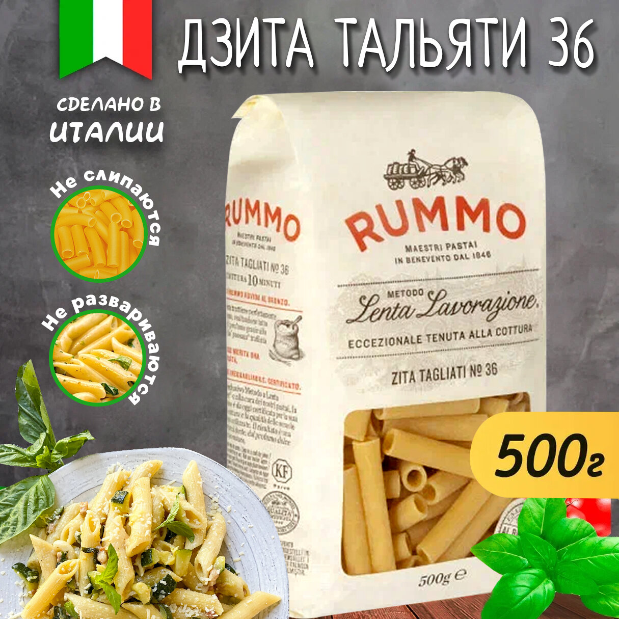 Макароны паста из твёрдых сортов пшеницы Rummo классические ДЗИТА ТАЛЬЯТИ 36, бум. пакет, 500 гр. интересное: