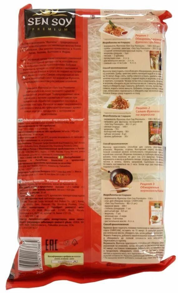 Вермишель фунчоза Sen Soy Premium из зеленых бобов, 200 гр интересное: