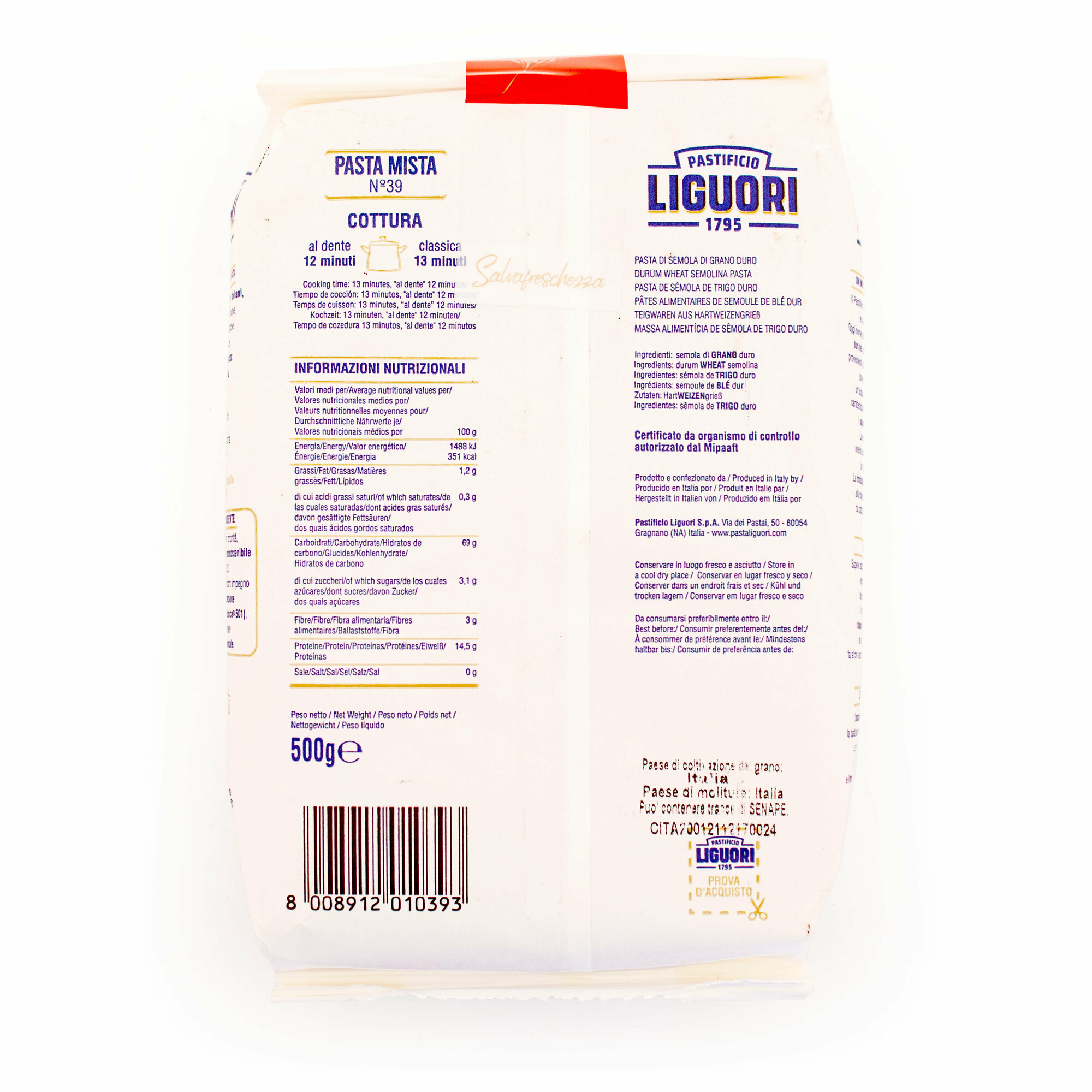 Купить Паста Миста №39, паста из Граньяно I.G.P. из твердых сортов пшеницы, LIGUORI, 0,5 кг (бум/упак)