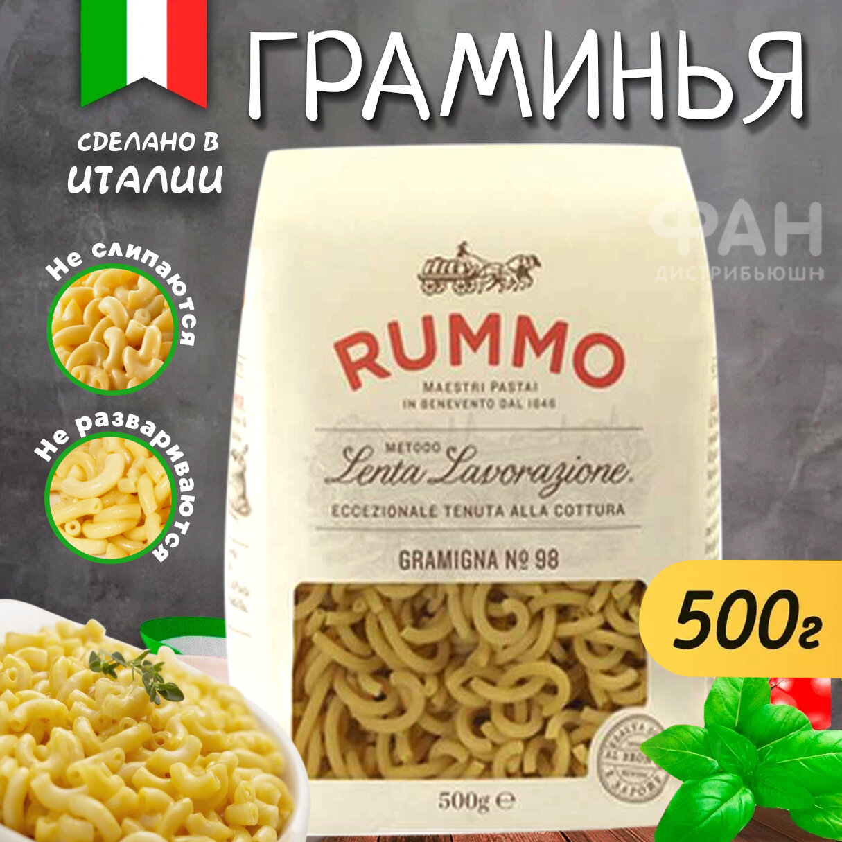 Макароны паста из твёрдых сортов пшеницы Rummo классические № 98 "Rummo" Граминья, бум. пакет, 500 гр. интересное:
