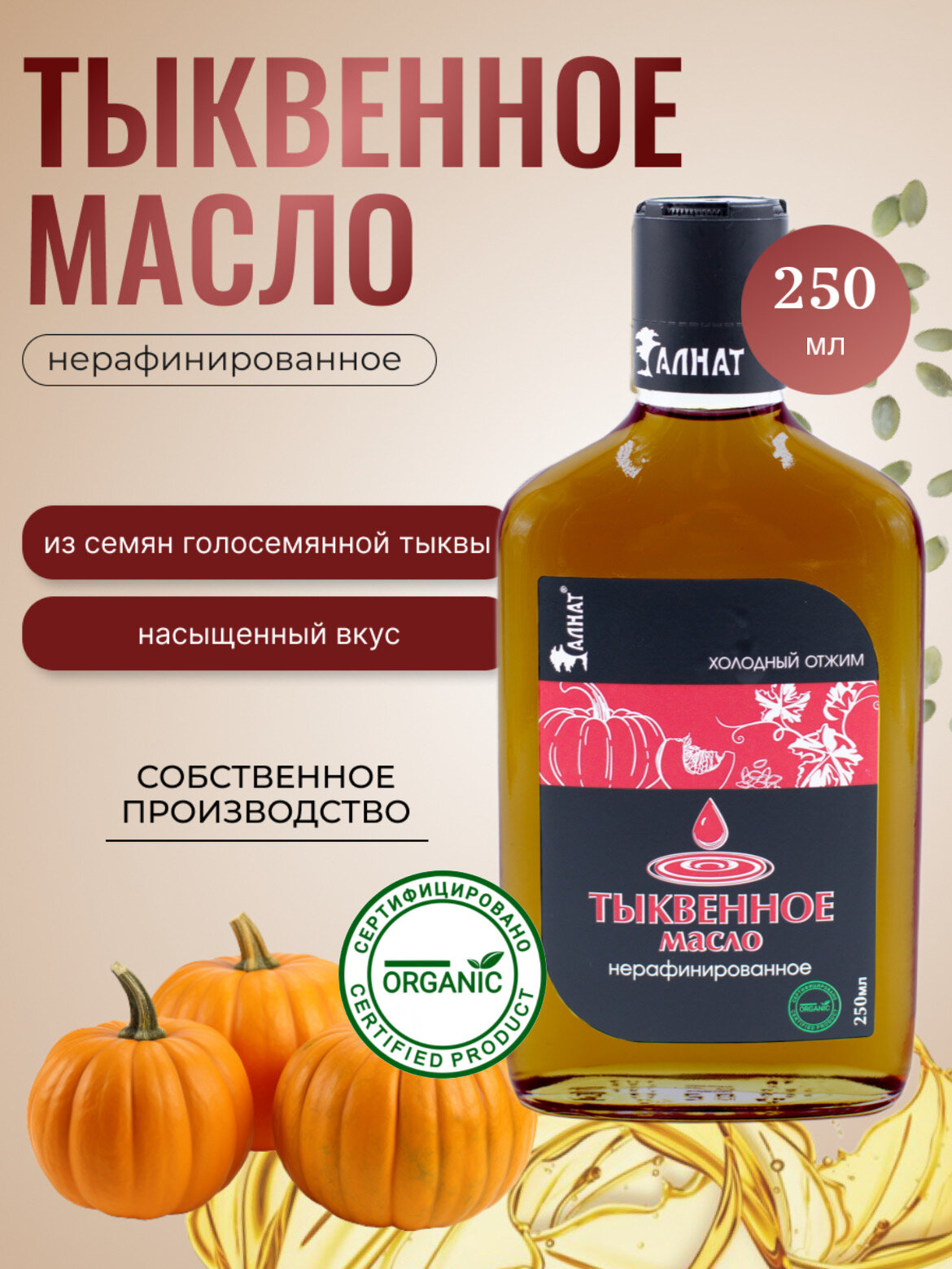Тыквенное масло холодного отжима, из семян голосемянной тыквы, Алнат, 250 мл интересное: