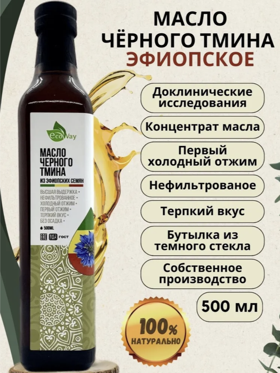 Пищевое Масло черного тмина EcoWay 500 мл из эфиопских семян интересное: