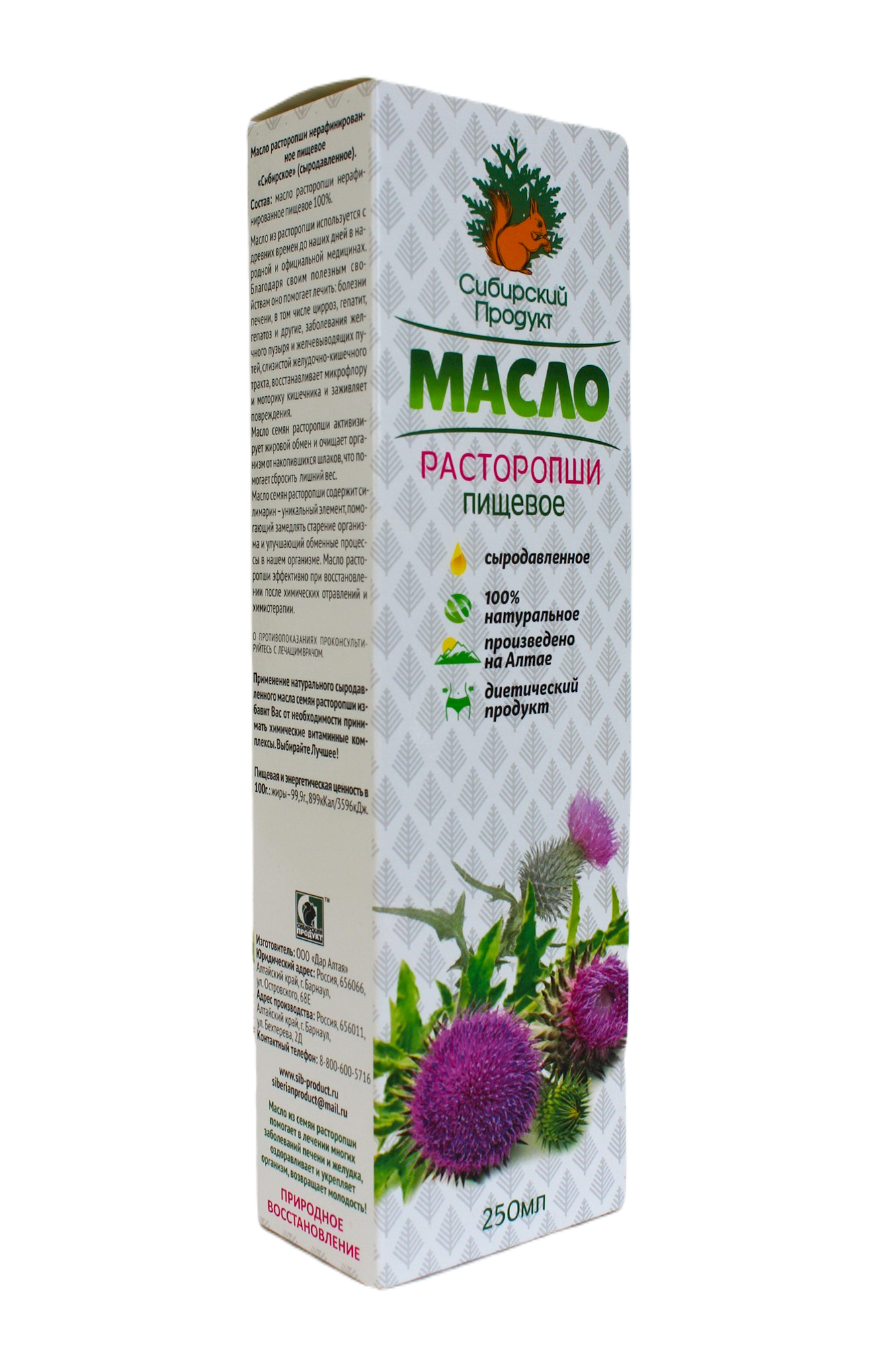 Масло расторопши, пищевое, нерафинированное, Сибирский продукт, 250 мл интересное: