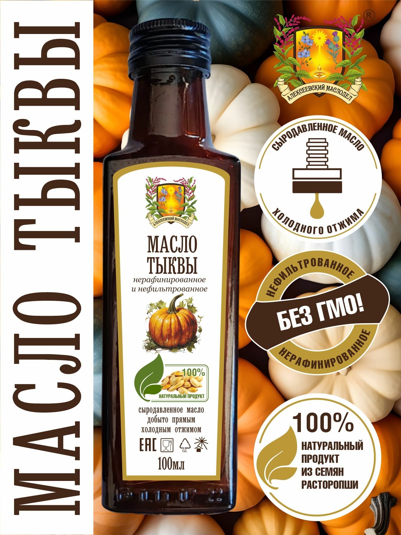 Купить Масло Тыквы Алексеевский маслодел, Extra Virgin, нерафинированное