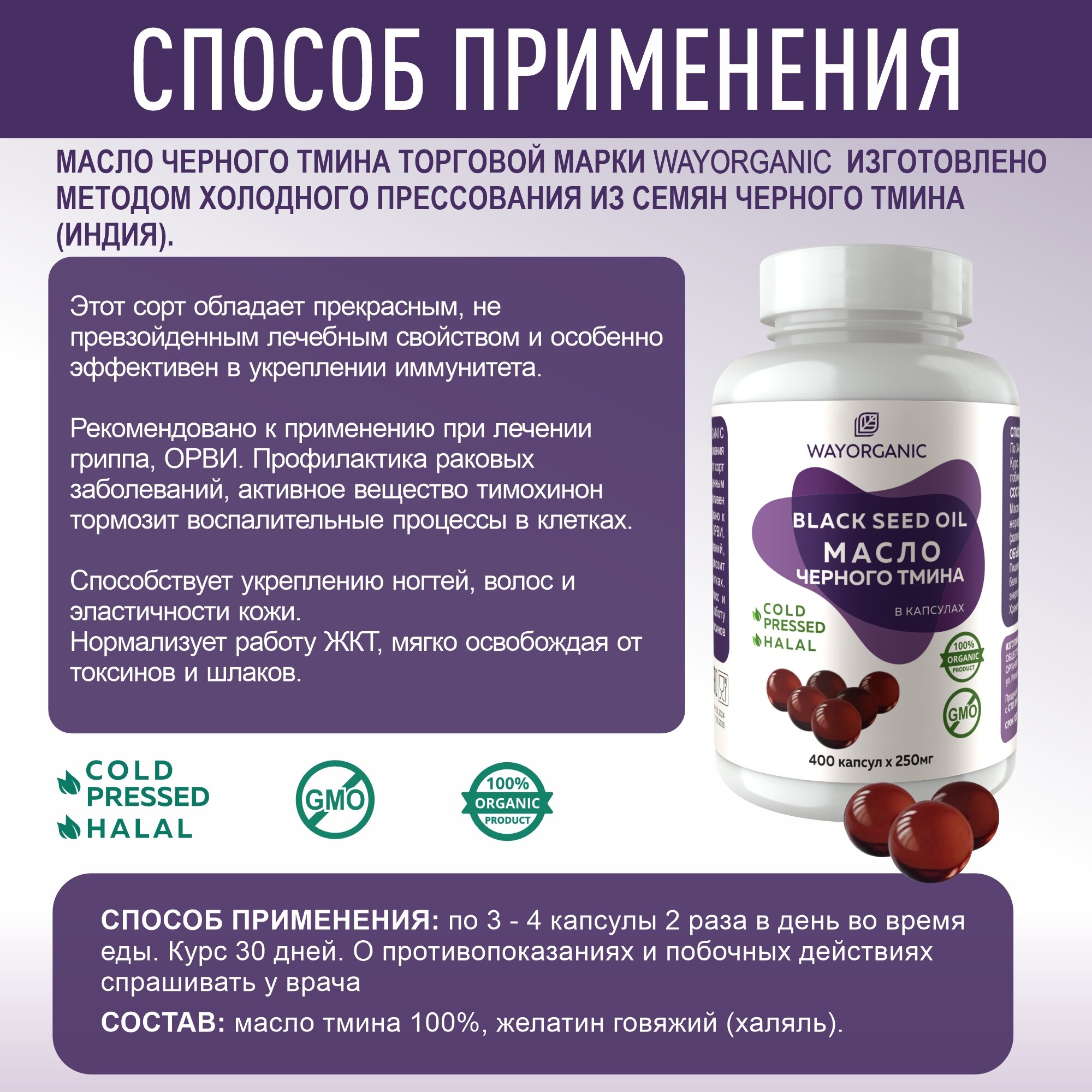 Масло черного тмина в капсулах холодного отжима WAYORGANIC 400 штук интересное: