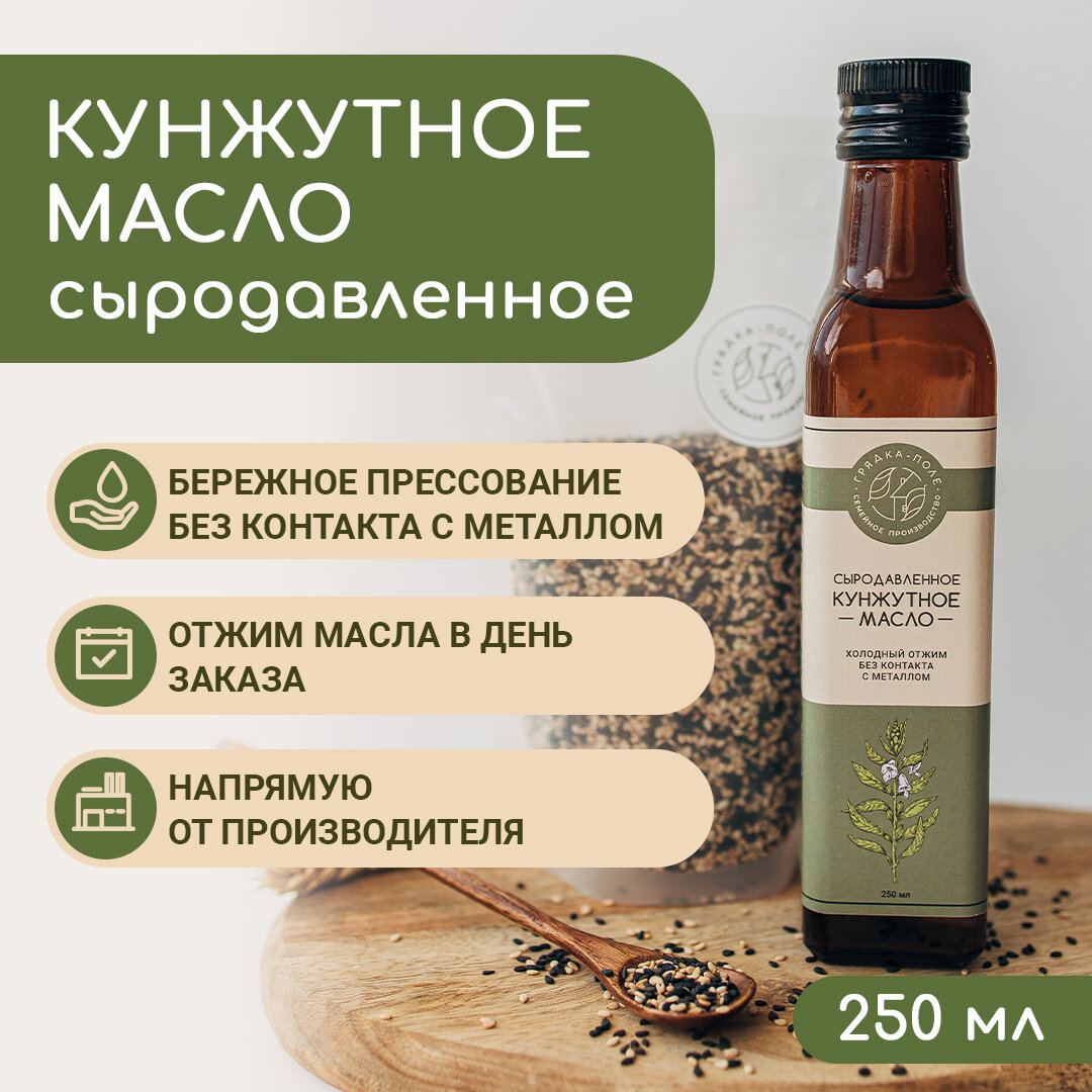 Кунжутное масло холодного отжима, сыродавленное Грядка-Поле, 250 мл интересное: