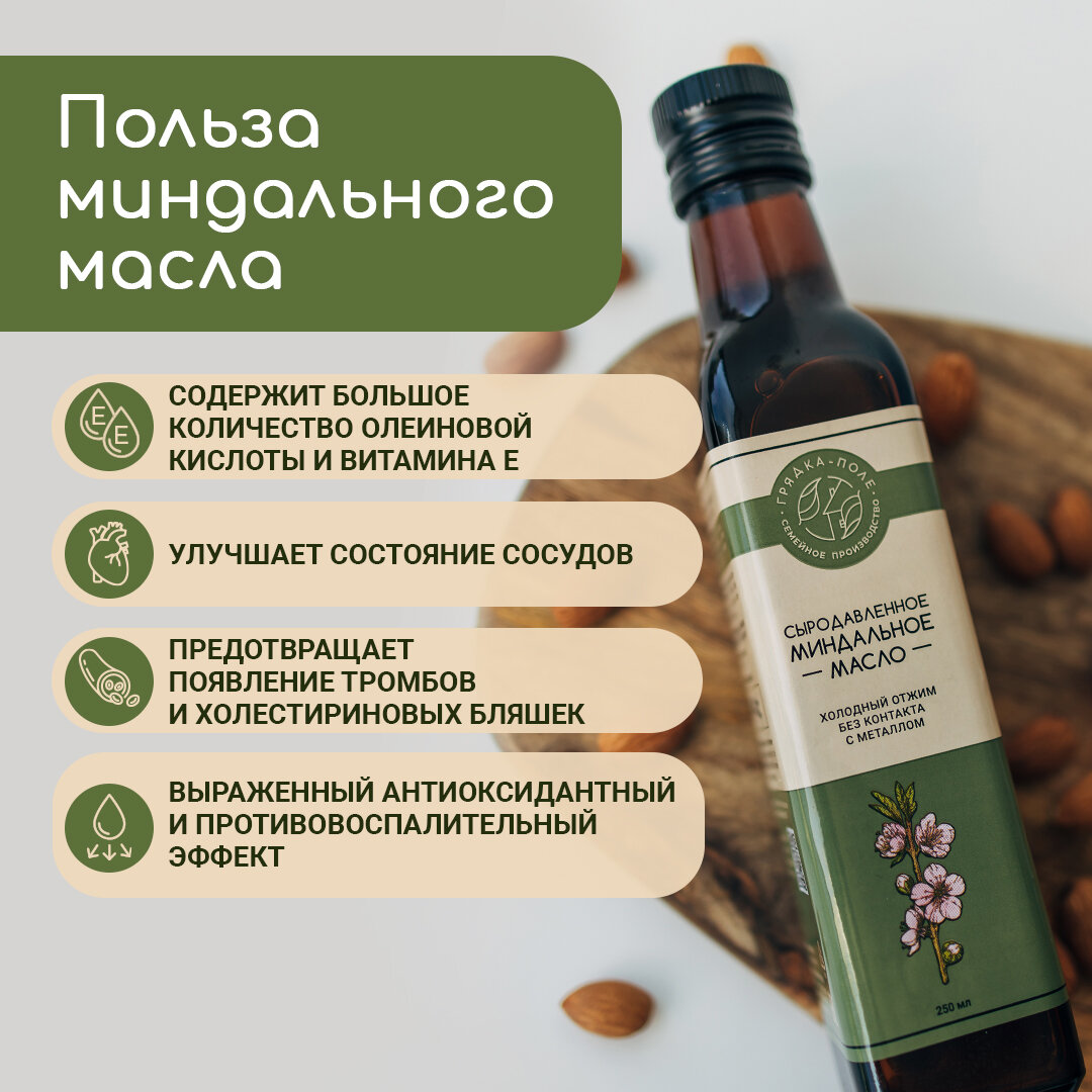 Миндальное масло холодного отжима, сыродавленное Грядка-Поле, 250 мл интересное: