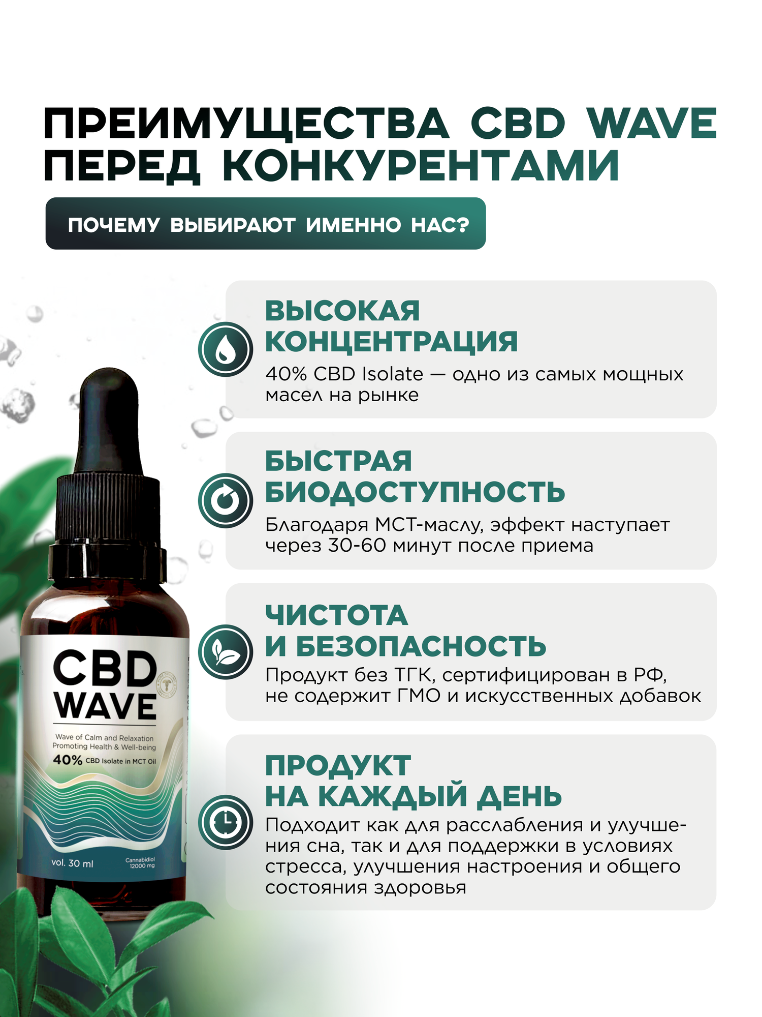 Масло с CBD КБД 40% 30 мл, 12000 мг, CBD WAVE (Конопляное масло) интересное: