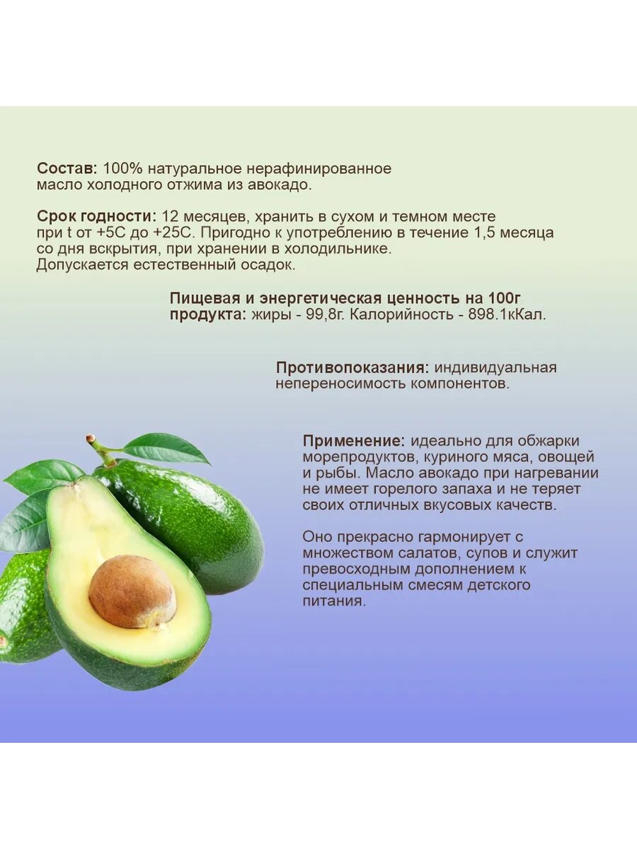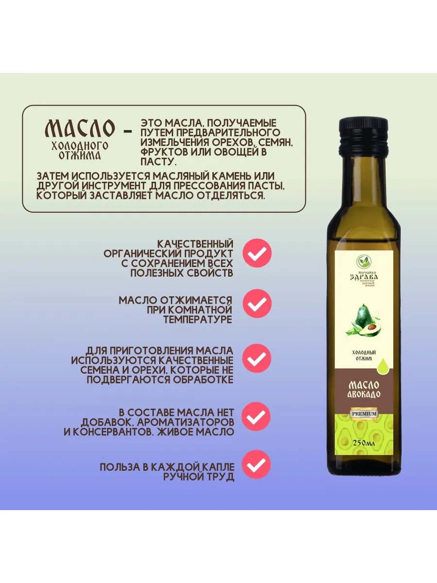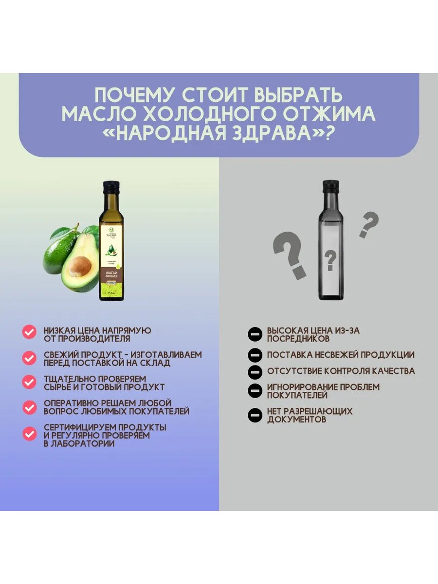 Масло Народная Здрава Авокадо, нерафинированный холодный отжим, 250мл, в стеклянной бутылке интересное: