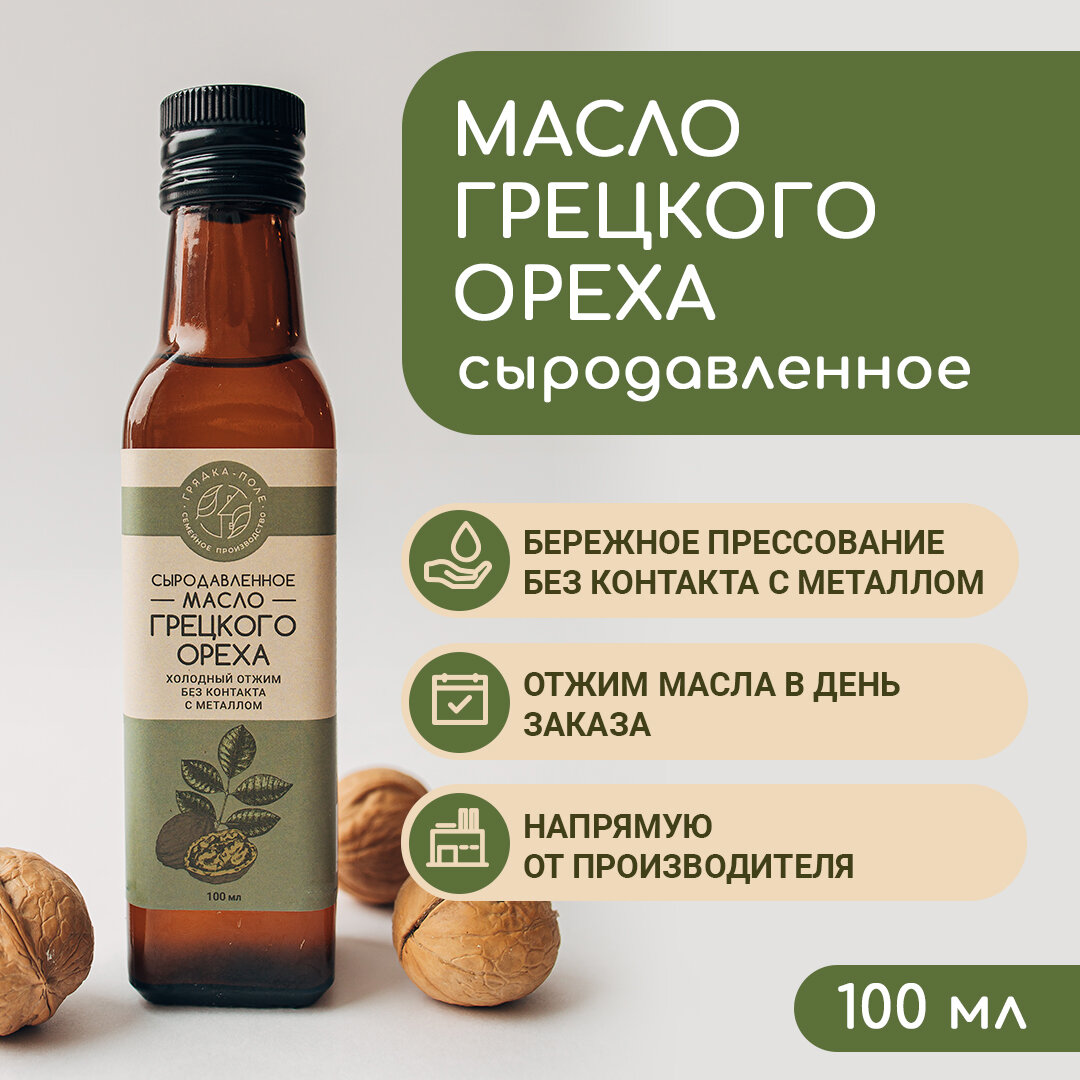 Масло грецкого ореха холодного отжима, сыродавленное Грядка-Поле, 100 мл интересное: