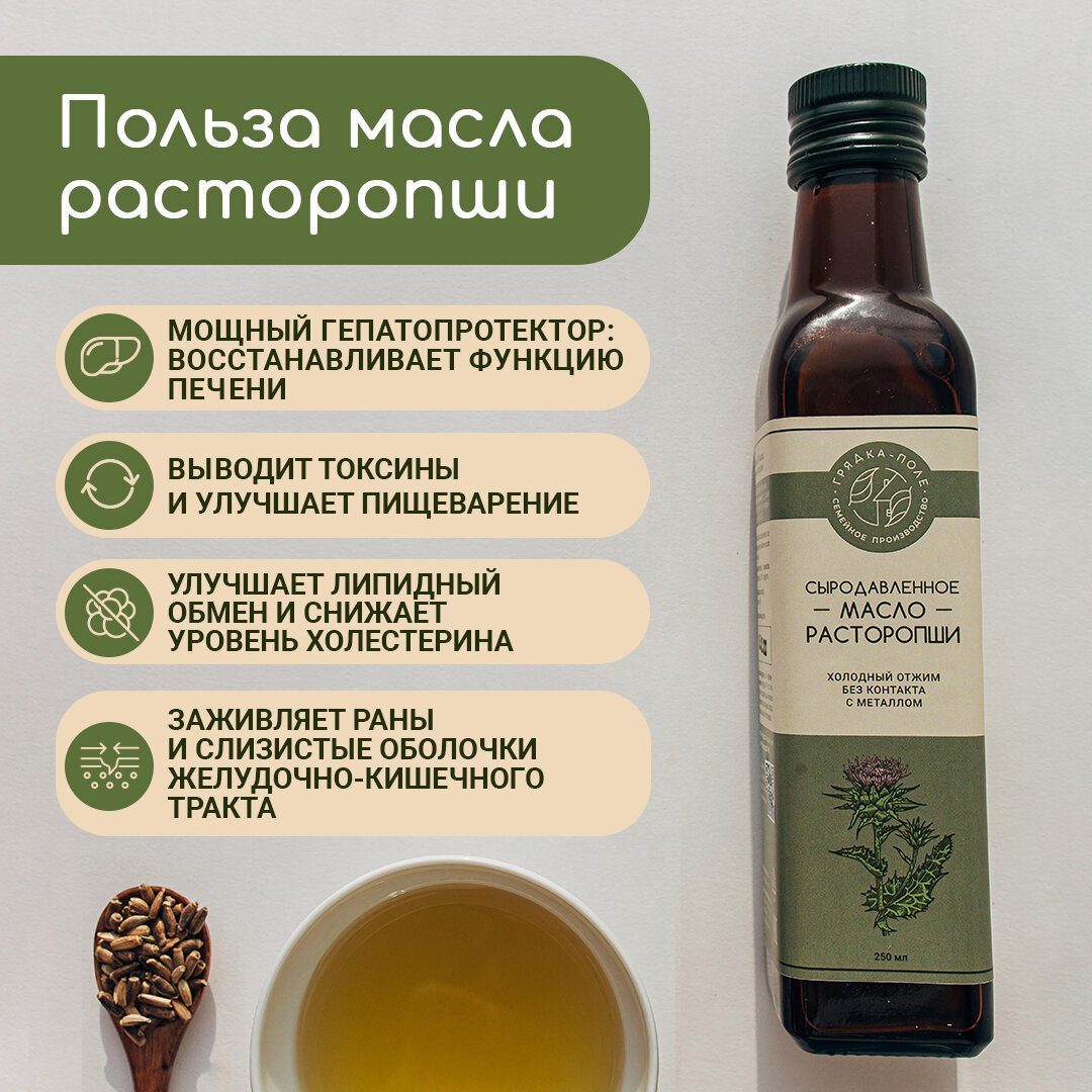 Масло расторопши холодного отжима, сыродавленное Грядка-Поле, 250 мл интересное: