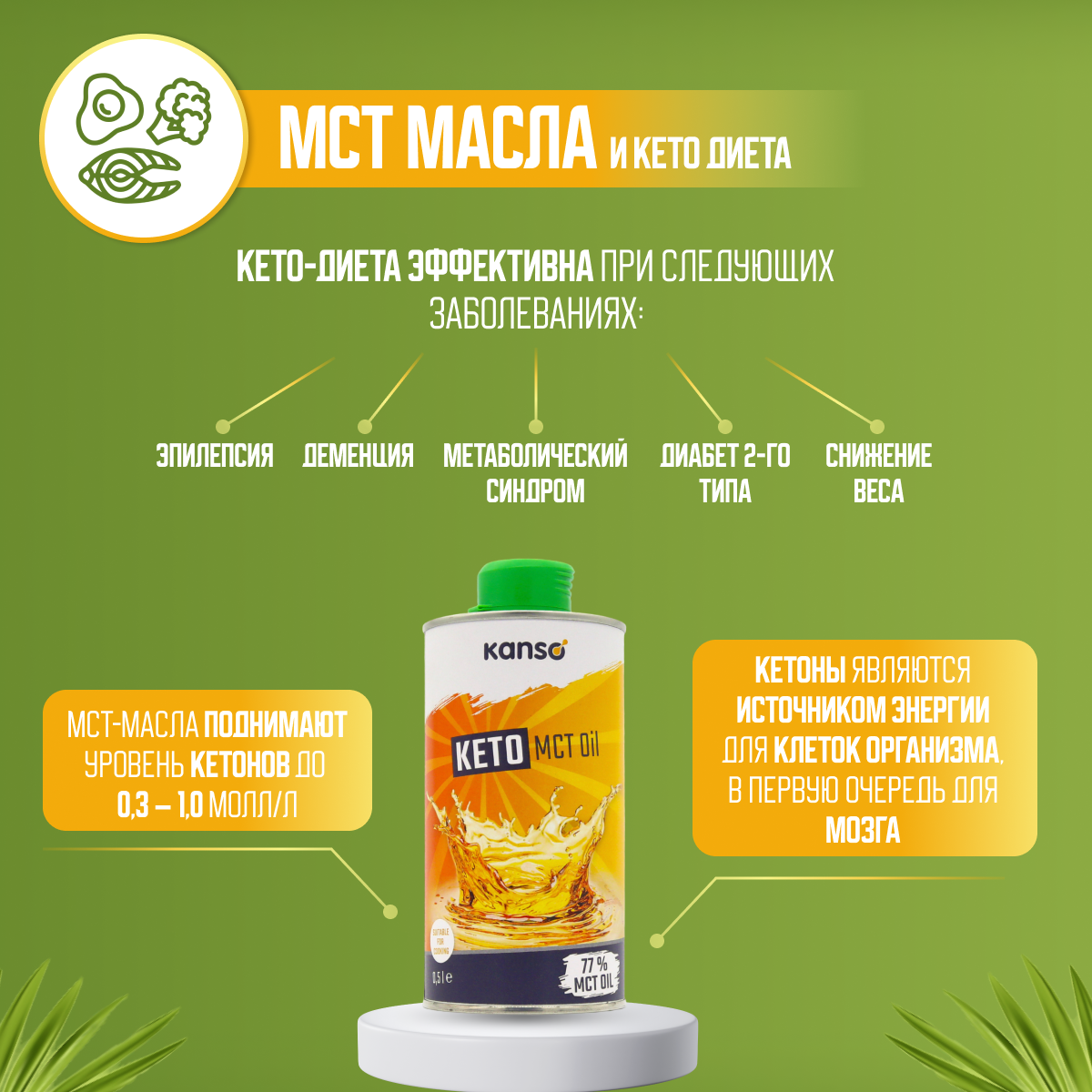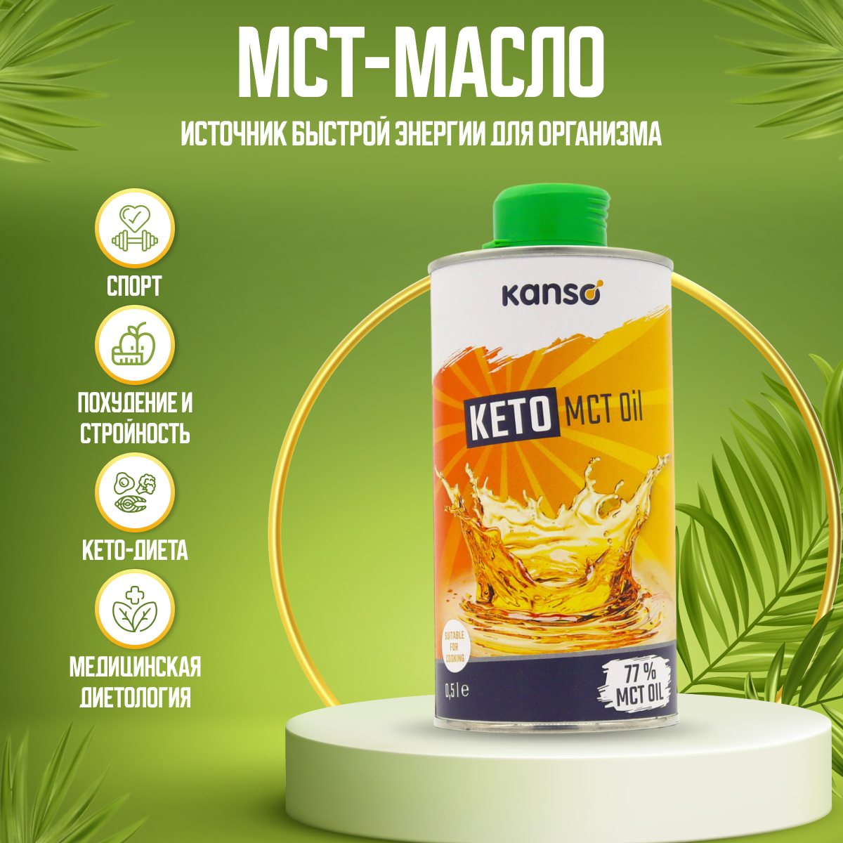 KANSO МСТ-масло 77% для кето-диеты,500 мл интересное: